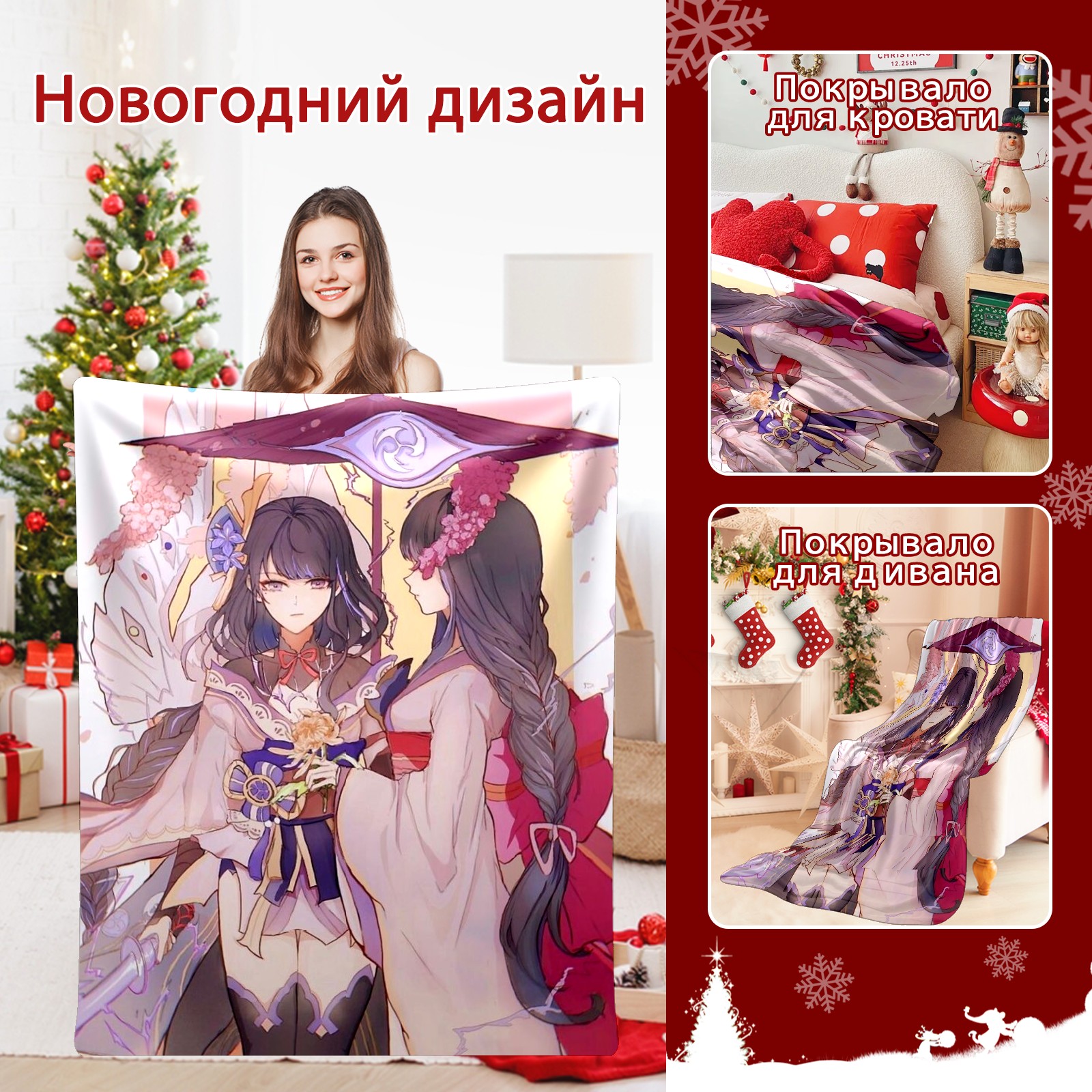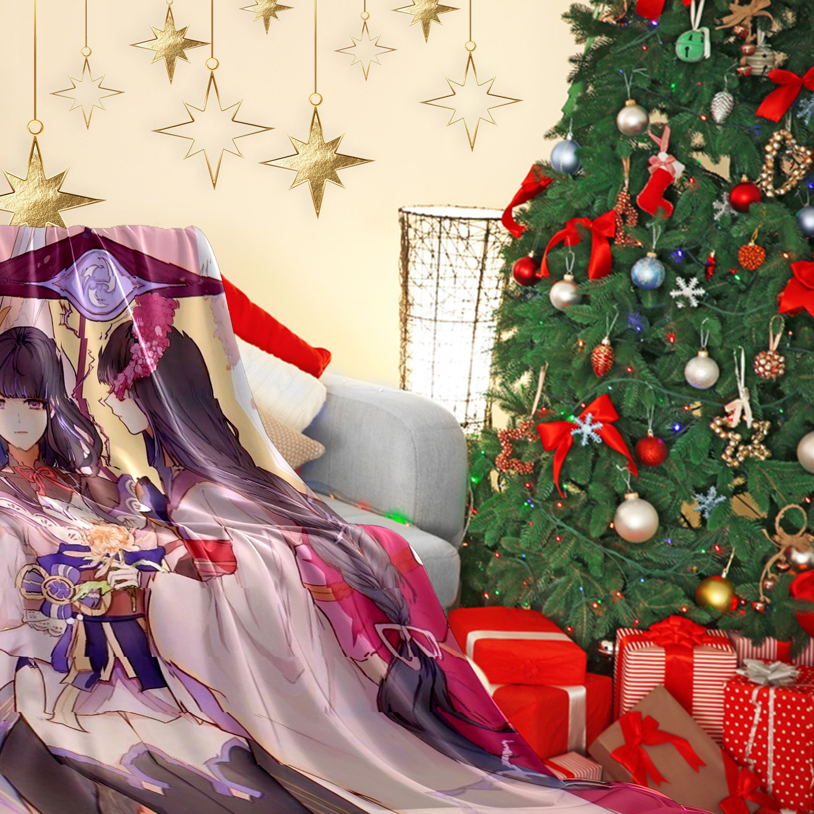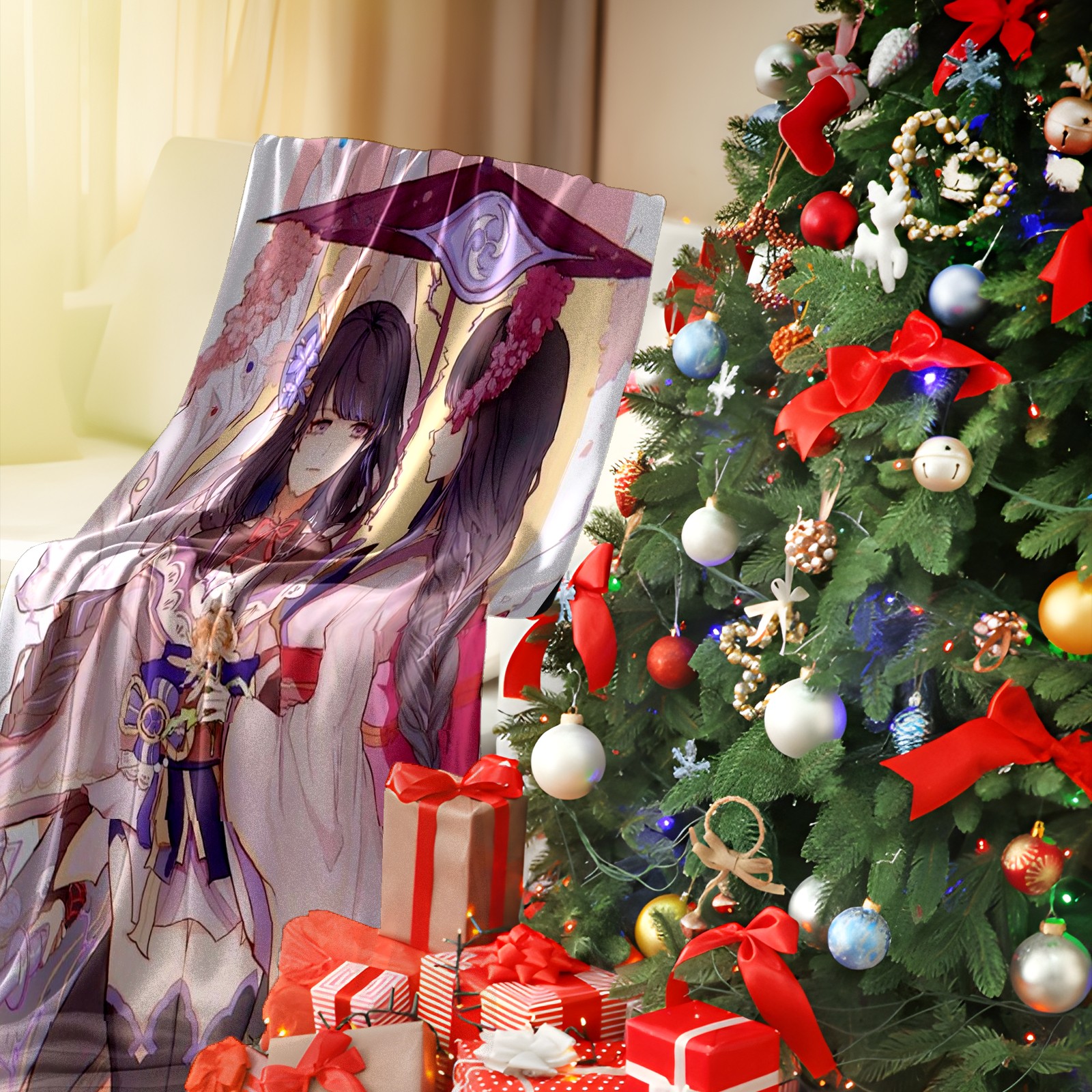 Flannel Blanket, Ultra-Soft Comfortable Home Decor Rug, The Perfect Comfort Gift for Both Men Women, Suitable for Beds, Sofas, Loungewear, and Travel 30x39in(原神 雷電将軍 056)
