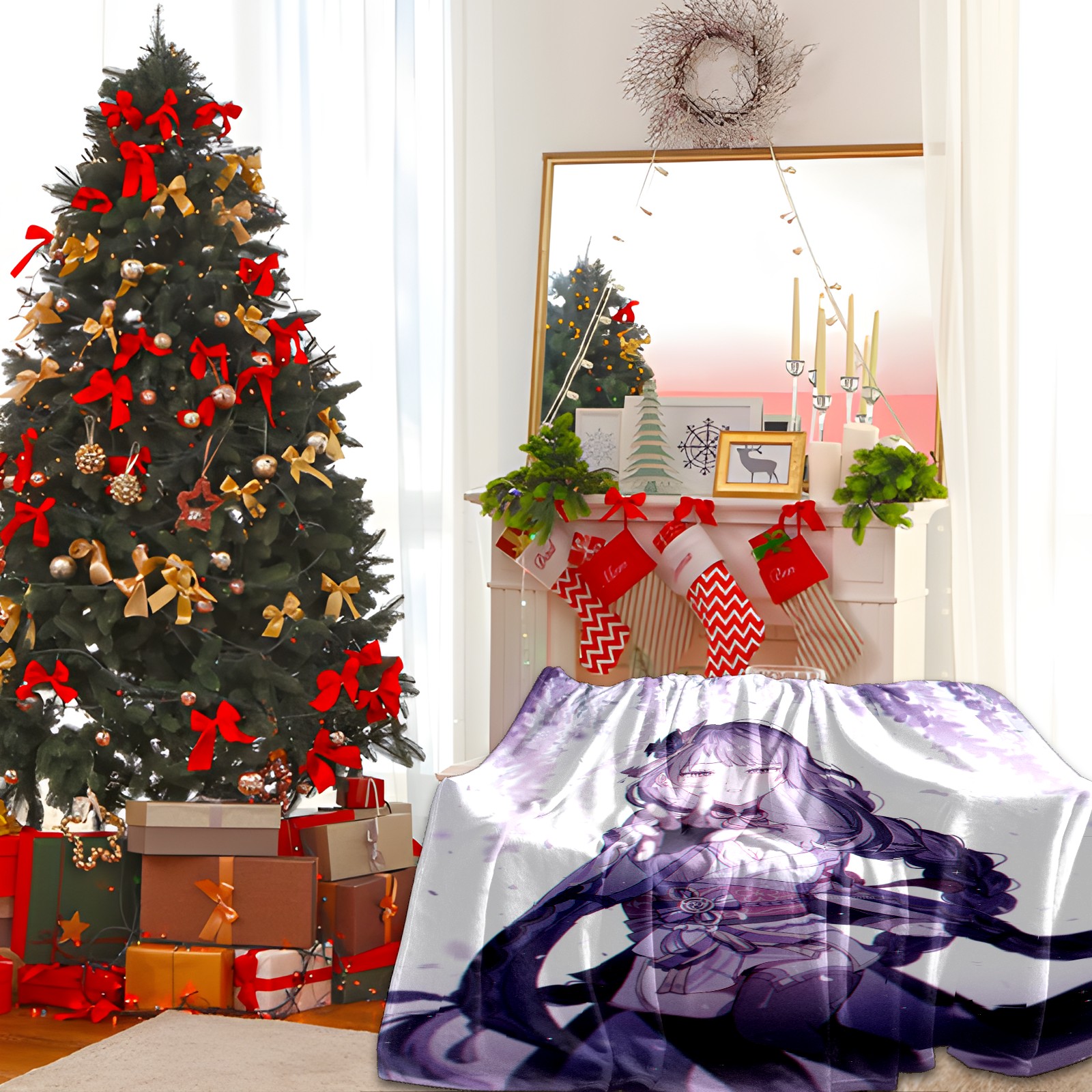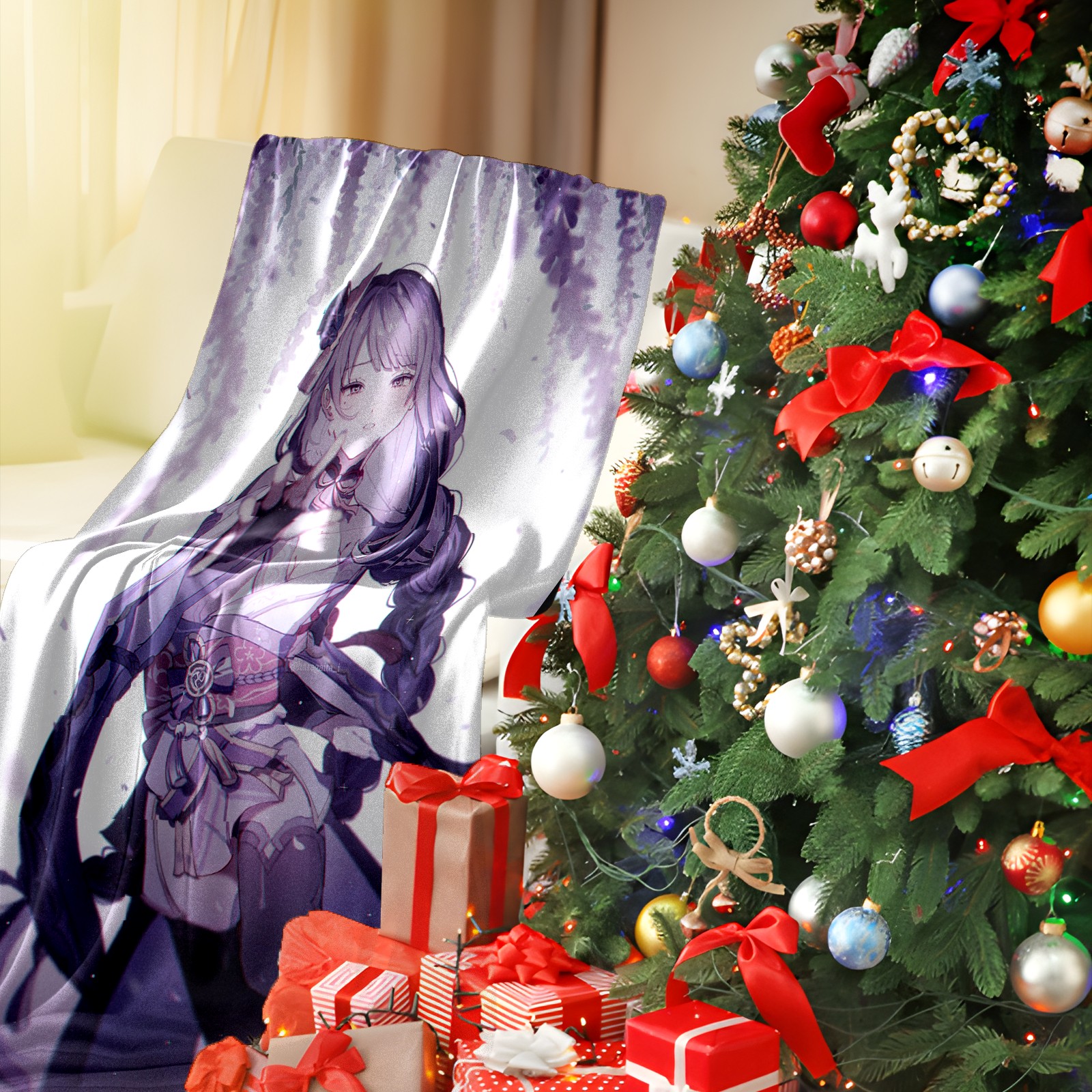 Flannel Blanket, Ultra-Soft Comfortable Home Decor Rug, The Perfect Comfort Gift for Both Men Women, Suitable for Beds, Sofas, Loungewear, and Travel 30x39in(原神 雷電将軍 061)
