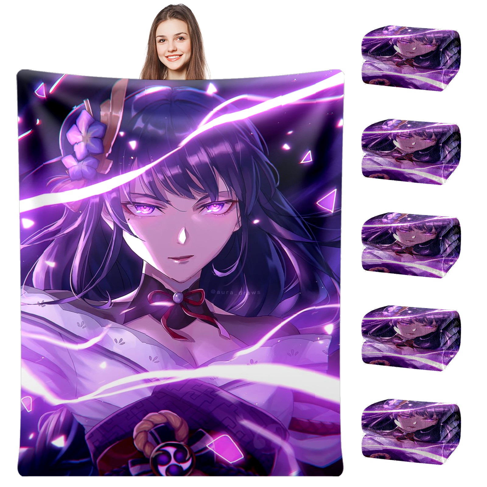 Flannel Blanket, Ultra-Soft Comfortable Home Decor Rug, The Perfect Comfort Gift for Both Men Women, Suitable for Beds, Sofas, Loungewear, and Travel 30x39in(原神 雷電将軍 067)