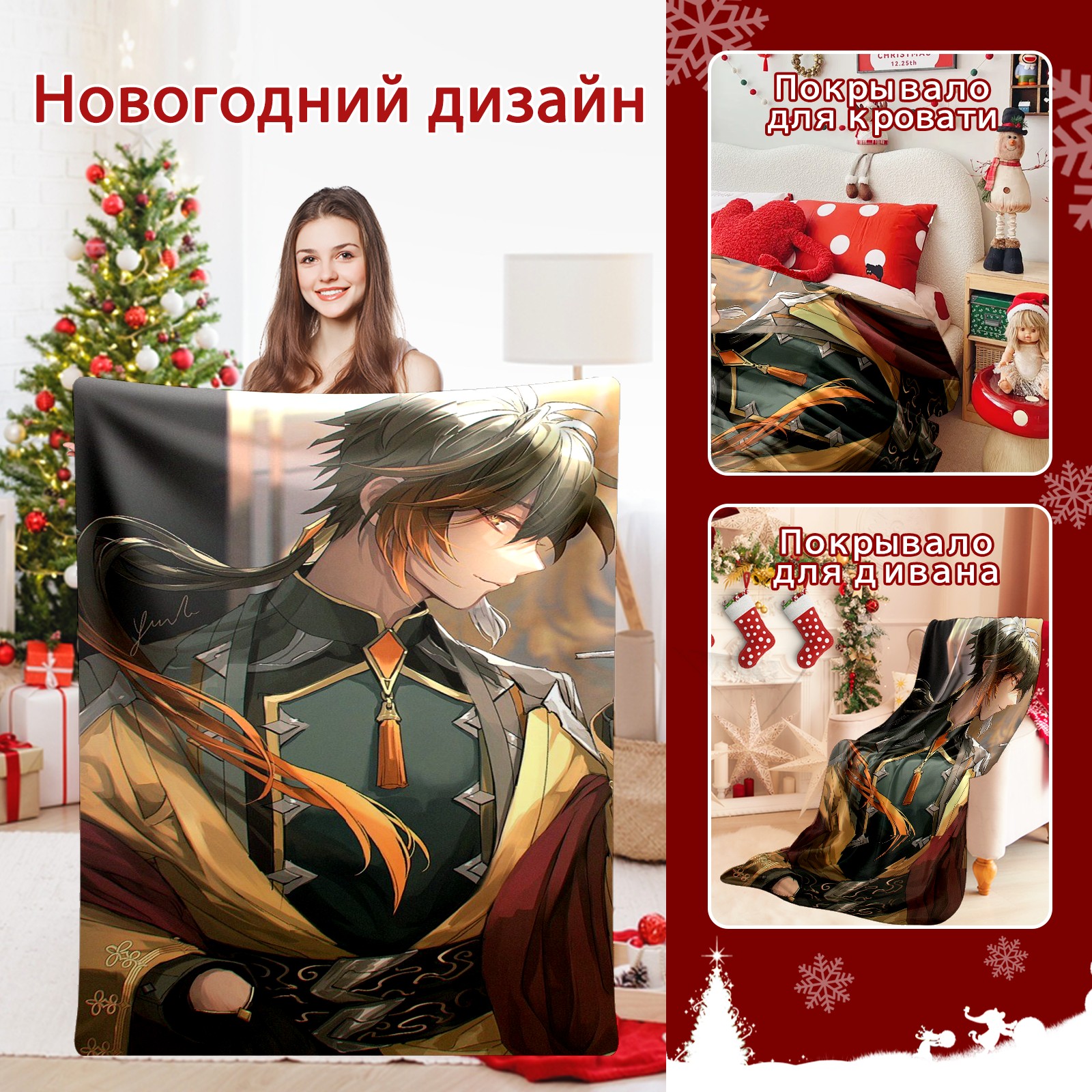 Flannel Blanket, Ultra-Soft Comfortable Home Decor Rug, The Perfect Comfort Gift for Both Men Women, Suitable for Beds, Sofas, Loungewear, and Travel 30x39in(原神 鍾離 ショウリ 005)