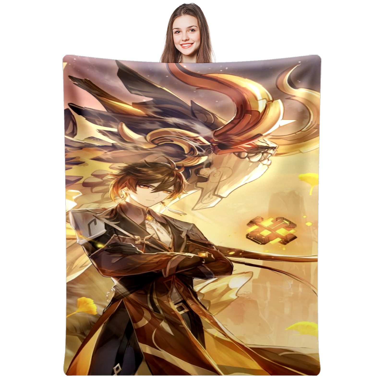 Flannel Blanket, Ultra-Soft Comfortable Home Decor Rug, The Perfect Comfort Gift for Both Men Women, Suitable for Beds, Sofas, Loungewear, and Travel 30x39in(原神 鍾離 ショウリ 006)