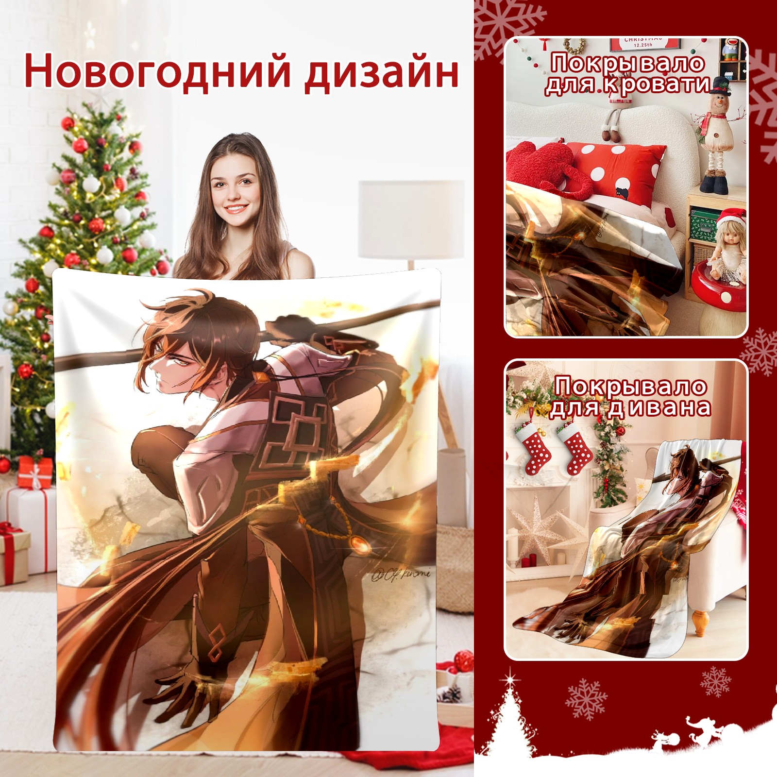 Flannel Blanket, Ultra-Soft Comfortable Home Decor Rug, The Perfect Comfort Gift for Both Men Women, Suitable for Beds, Sofas, Loungewear, and Travel 30x39in(原神 鍾離 ショウリ 015)