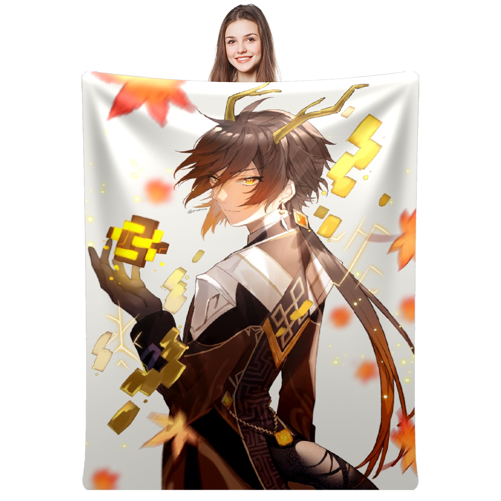 Flannel Blanket, Ultra-Soft Comfortable Home Decor Rug, The Perfect Comfort Gift for Both Men Women, Suitable for Beds, Sofas, Loungewear, and Travel 30x39in(原神 鍾離 ショウリ 026)