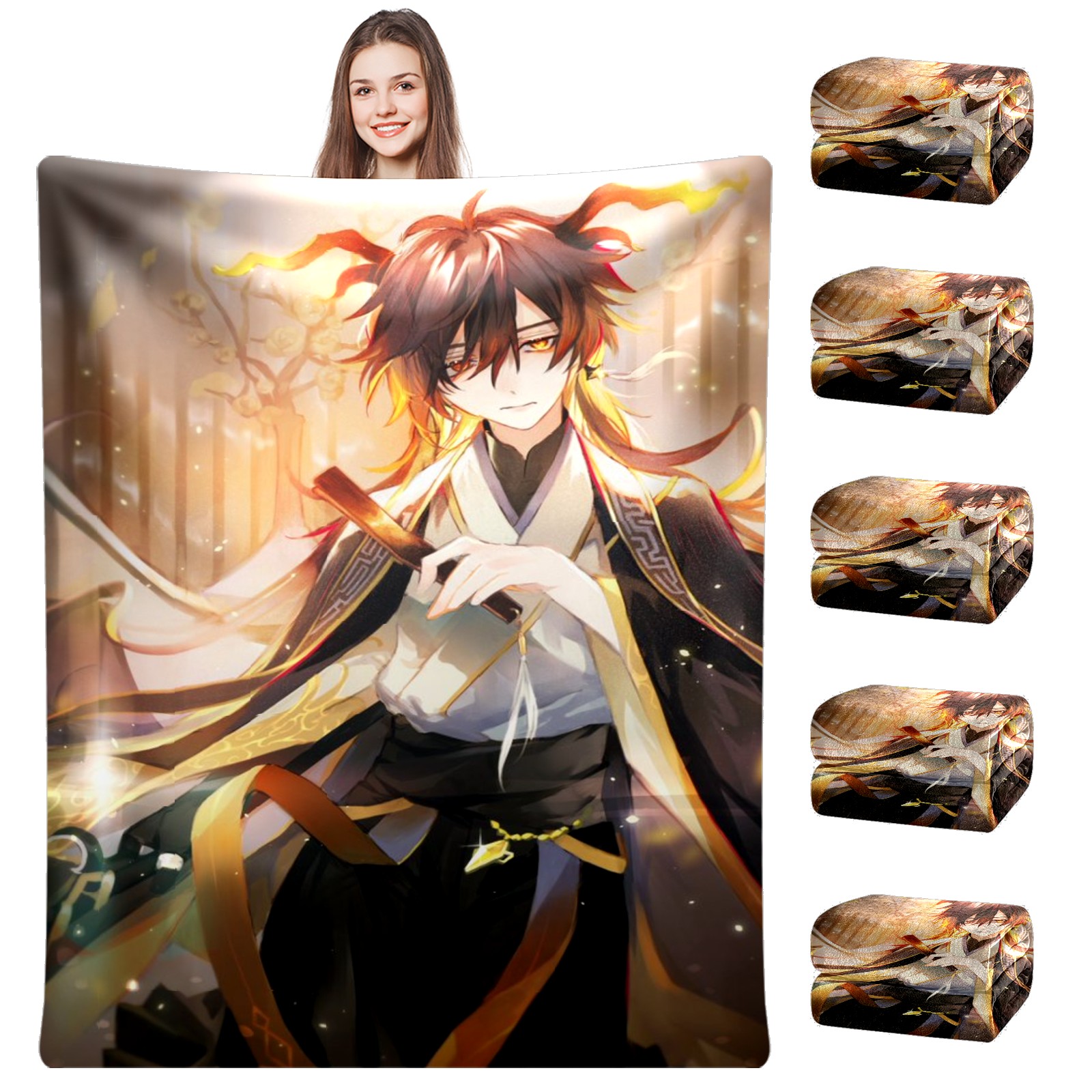 Flannel Blanket, Ultra-Soft Comfortable Home Decor Rug, The Perfect Comfort Gift for Both Men Women, Suitable for Beds, Sofas, Loungewear, and Travel 30x39in(原神 鍾離 ショウリ 040)