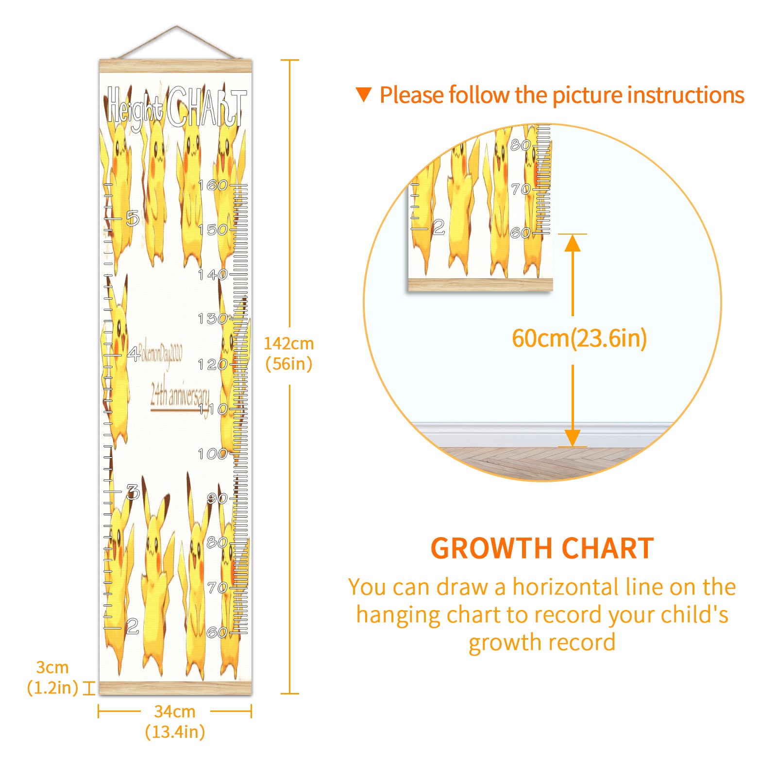 Съемная таблица роста для детей - Вешная таблица измерения роста - Значимые воспоминания через измерение роста по детской таблице Таблица роста с линейкой для настенного крепления横图A (23) Home Decor
