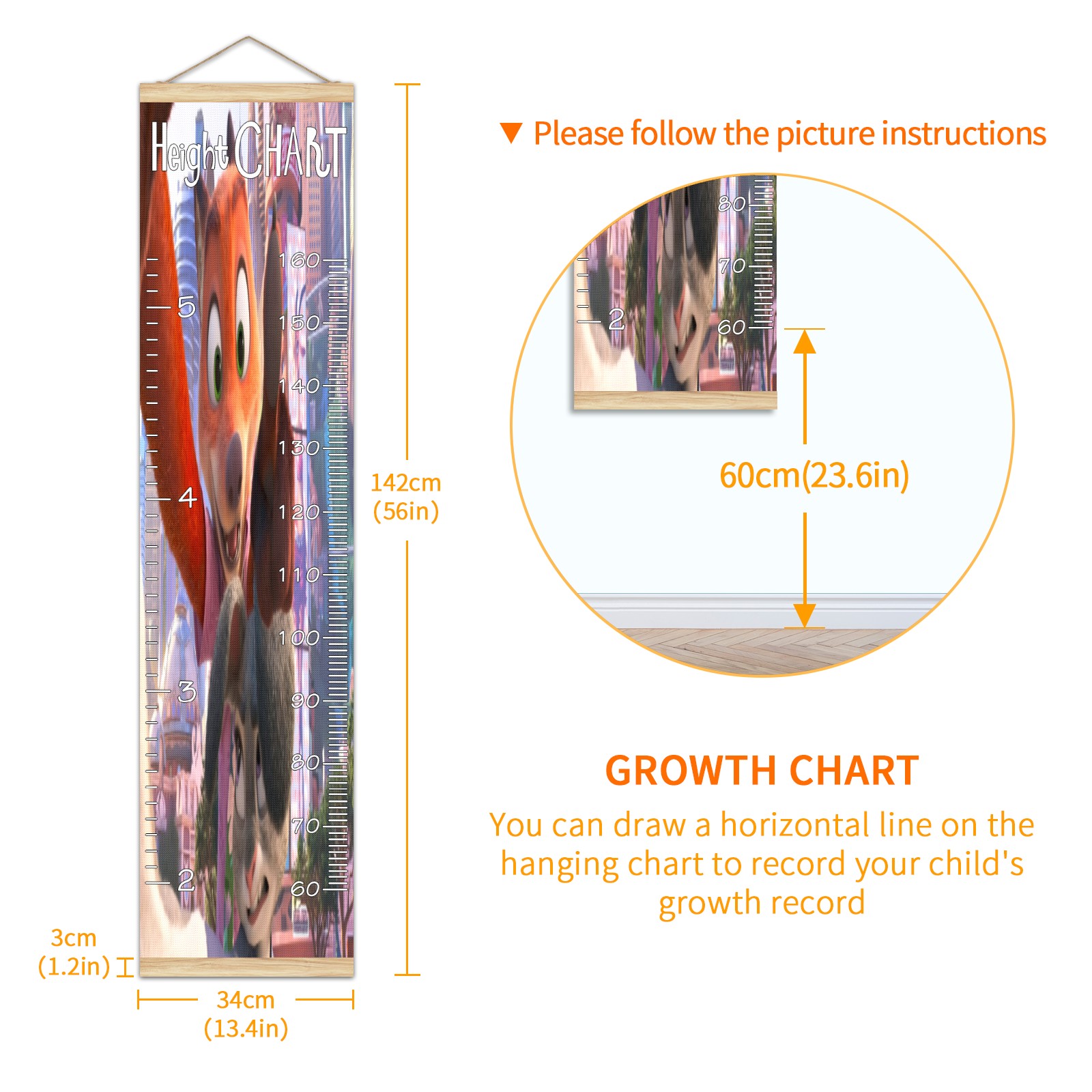 Съемная таблица роста для детей - Вешная таблица измерения роста - Значимые воспоминания через измерение роста по детской таблице Таблица роста с линейкой для настенного крепления疯狂动物城 电脑05 Home Decor