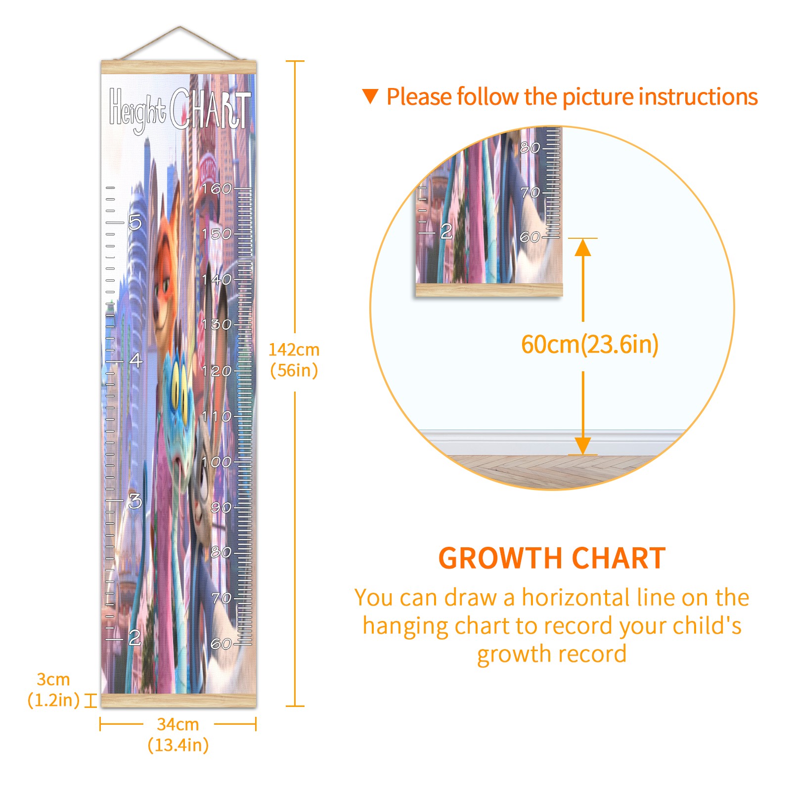 Съемная таблица роста для детей - Вешная таблица измерения роста - Значимые воспоминания через измерение роста по детской таблице Таблица роста с линейкой для настенного крепления疯狂动物城 电脑03 Home Decor