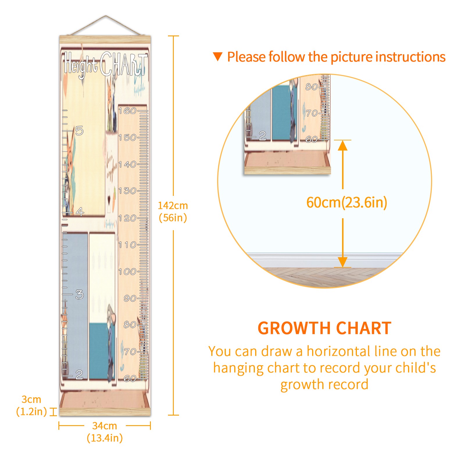 • Детская таблица роста, деревянная рамка для настенного измерителя, таблица роста для детей, измерительная таблица высоты, 13,4x56 дюймов, ткань из льна, подвеска для домашнего декора! Память о прошлом: просто повесьте диаграмму на стену и отметьте на ней дату ручкой, чтобы вместе расти с детьми и записывать их рост в разные годы. Идеальный подарок для детей Экологически чистый и нетоксичный для использования детьми, это идеальный подарок для младенцев, детей, девочек и мальчиков. Это лучший выбор для вашего друга с детьми или младенцем в качестве популярного подарка. Легко читать Измерение точно с 2 шкалами, сантиметры и футы. Буквы достаточно большие, очень легко читать.