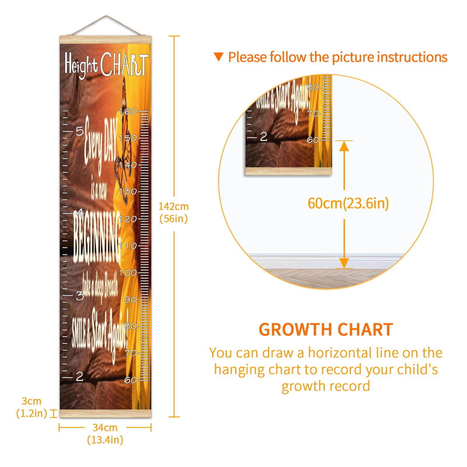 • Детская таблица роста, деревянная рамка для настенного измерителя, таблица роста для детей, измерительная таблица высоты, 13,4x56 дюймов, ткань из льна, подвеска для домашнего декора! Память о прошлом: просто повесьте диаграмму на стену и отметьте на ней дату ручкой, чтобы вместе расти с детьми и записывать их рост в разные годы. Идеальный подарок для детей Экологически чистый и нетоксичный для использования детьми, это идеальный подарок для младенцев, детей, девочек и мальчиков. Это лучший выбор для вашего друга с детьми или младенцем в качестве популярного подарка. Легко читать Измерение точно с 2 шкалами, сантиметры и футы. Буквы достаточно большие, очень легко читать.