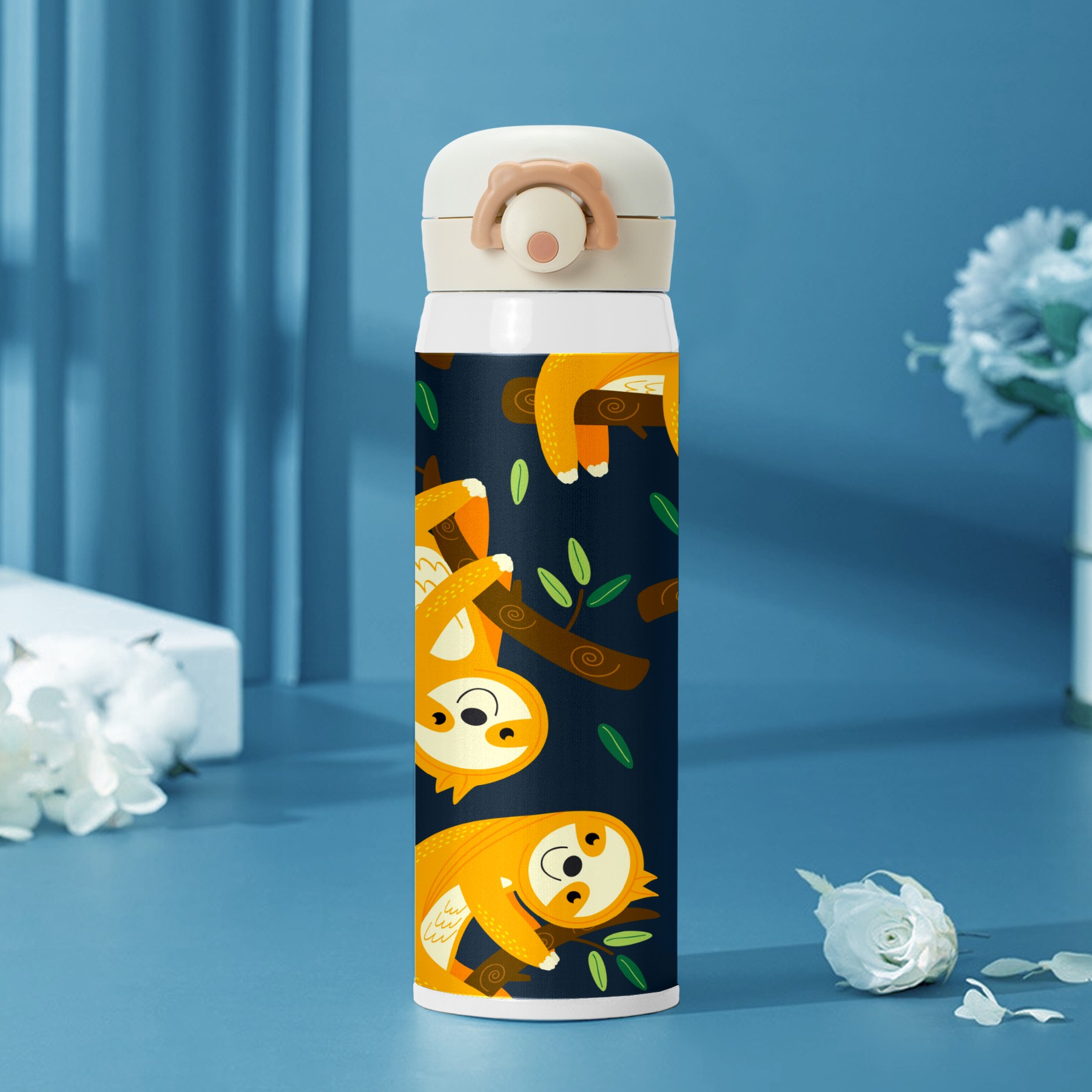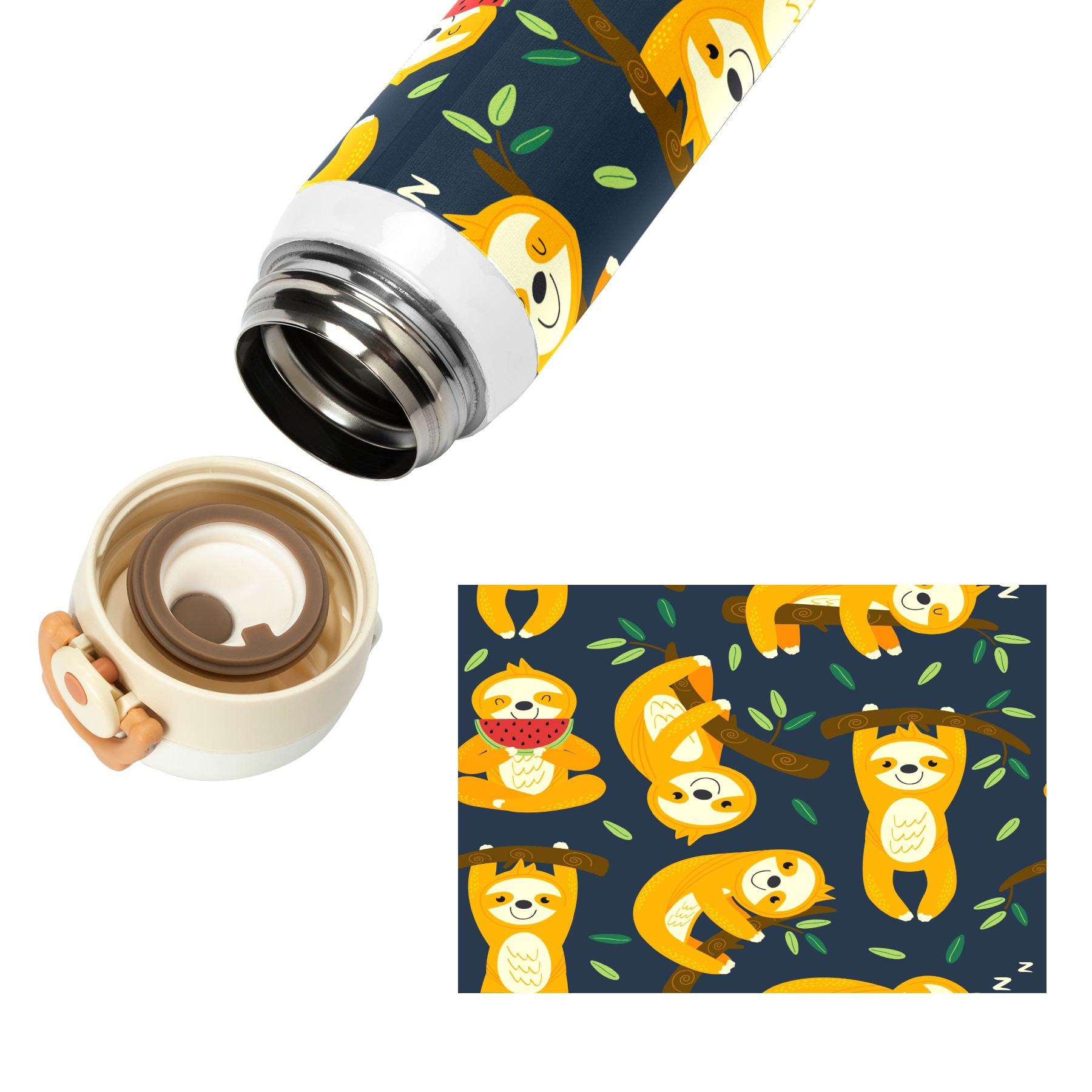 Cute Sloth On A Branch With Green Leaves Watermelon