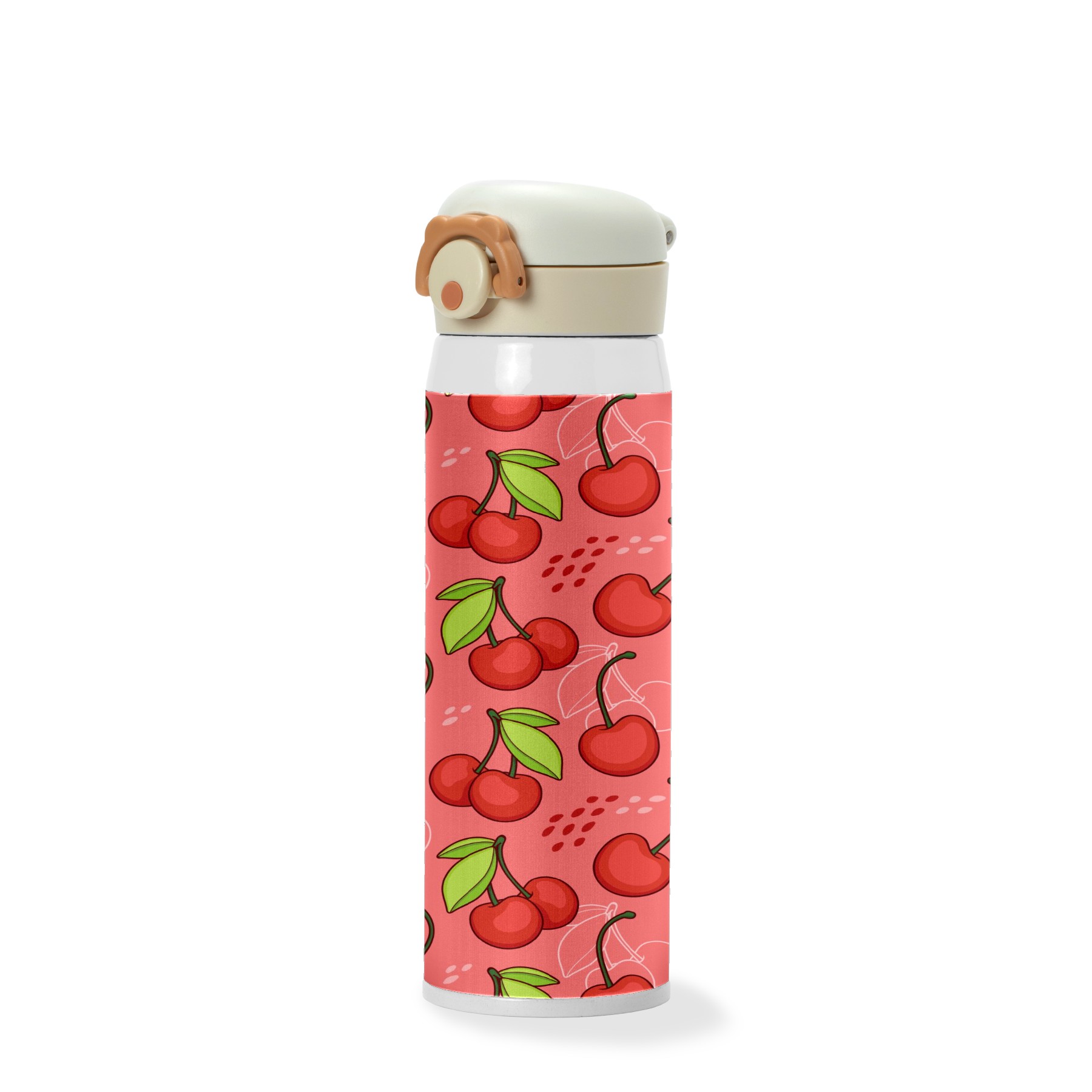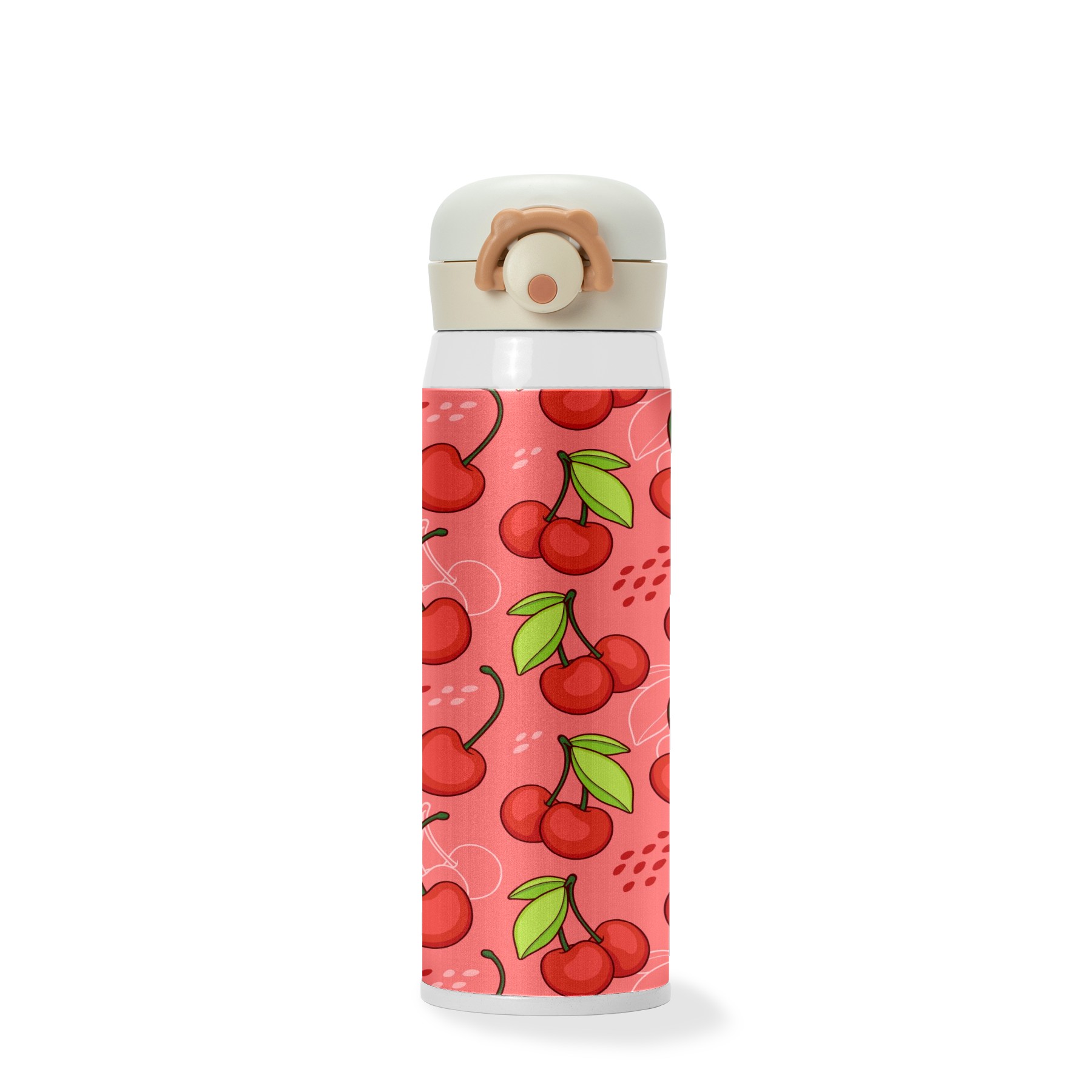Sweet Red Cherry Fruits Pattern Green Leaves Pink