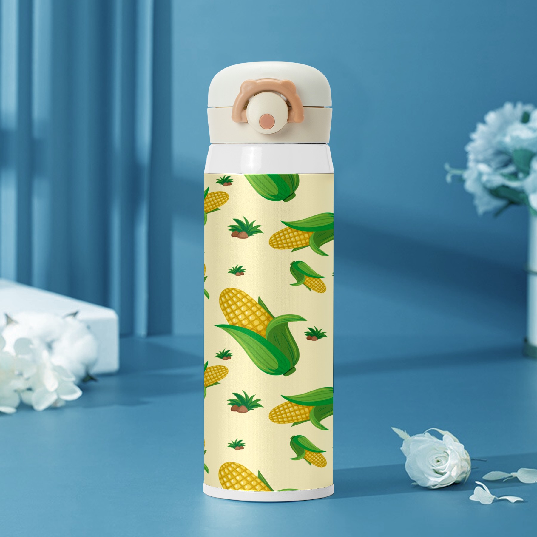 Corns Yellow With Green Leaves Pattern Cute