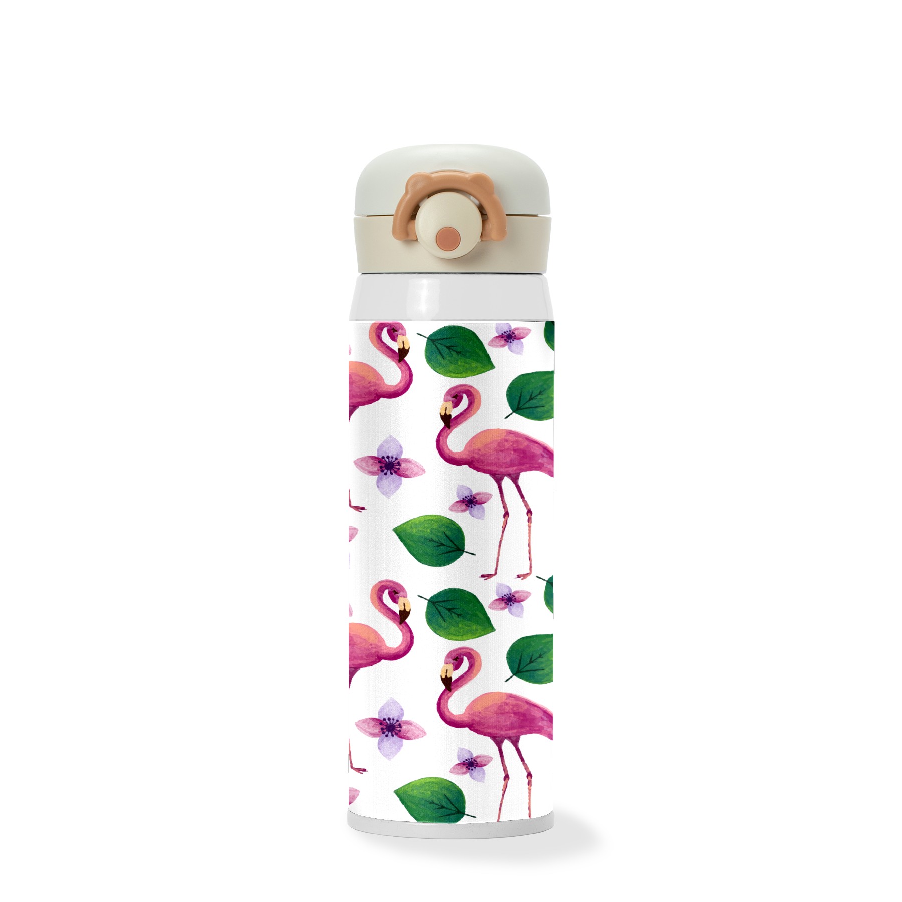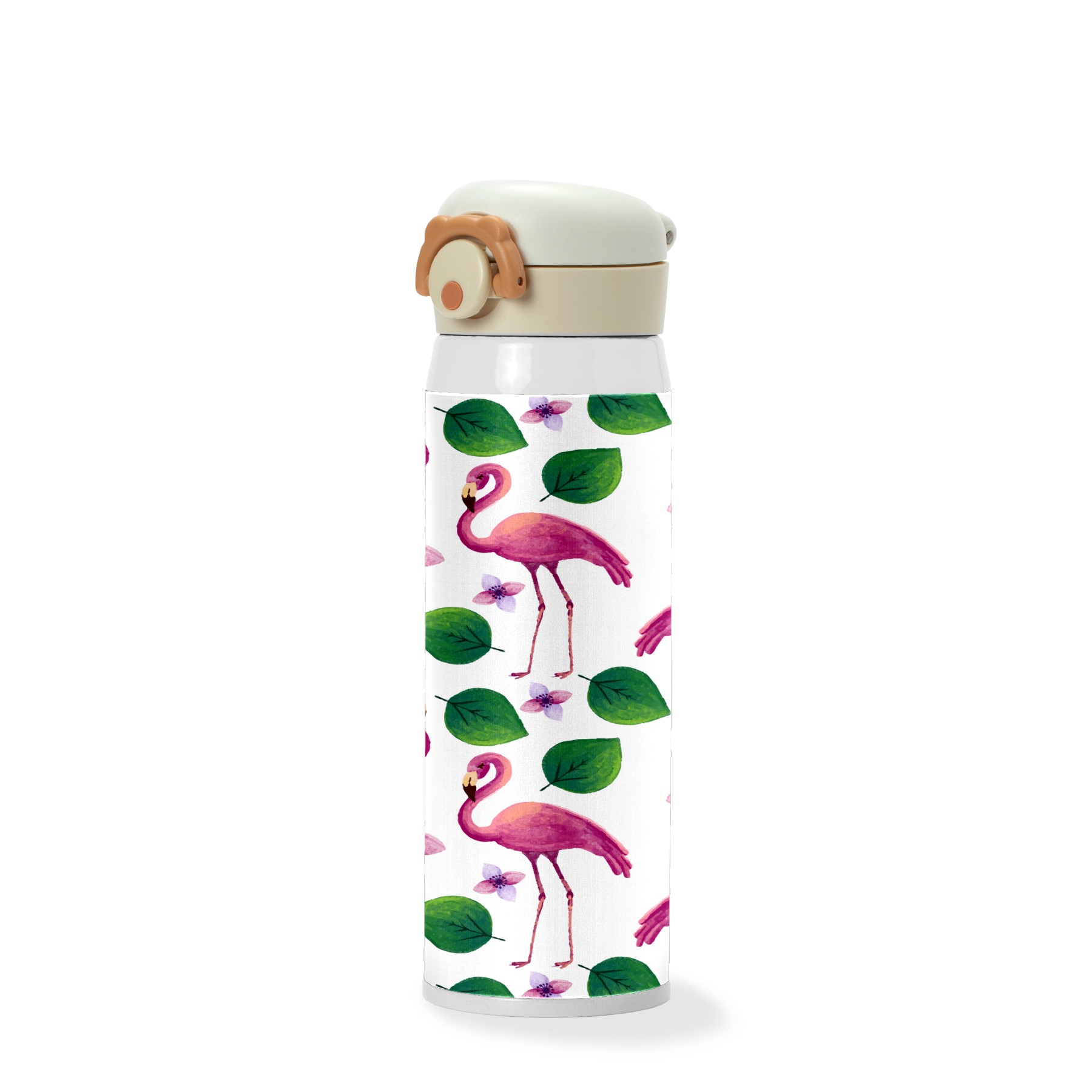 Watercolor Tropical Flamingo Palm Leaves Flowr Pattern