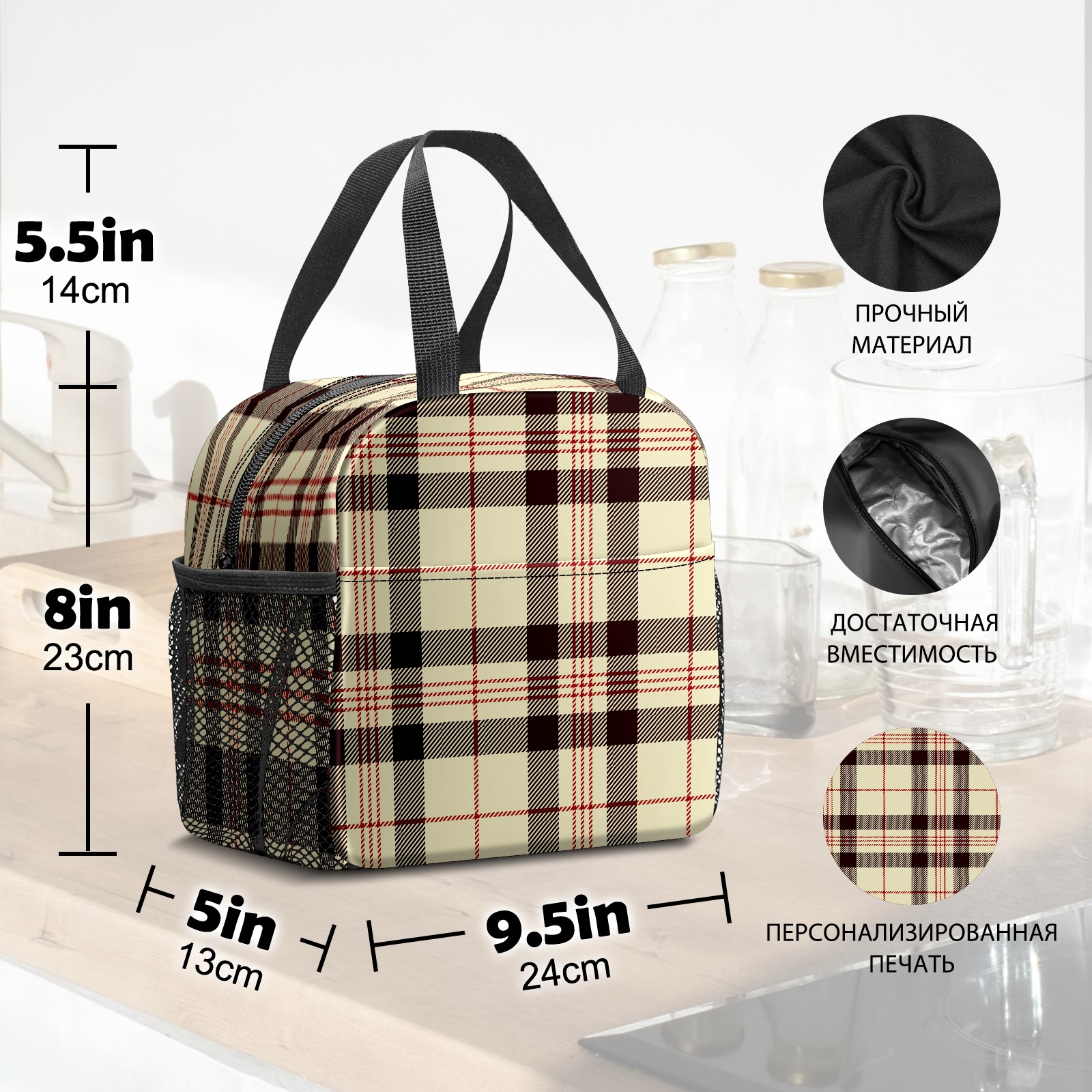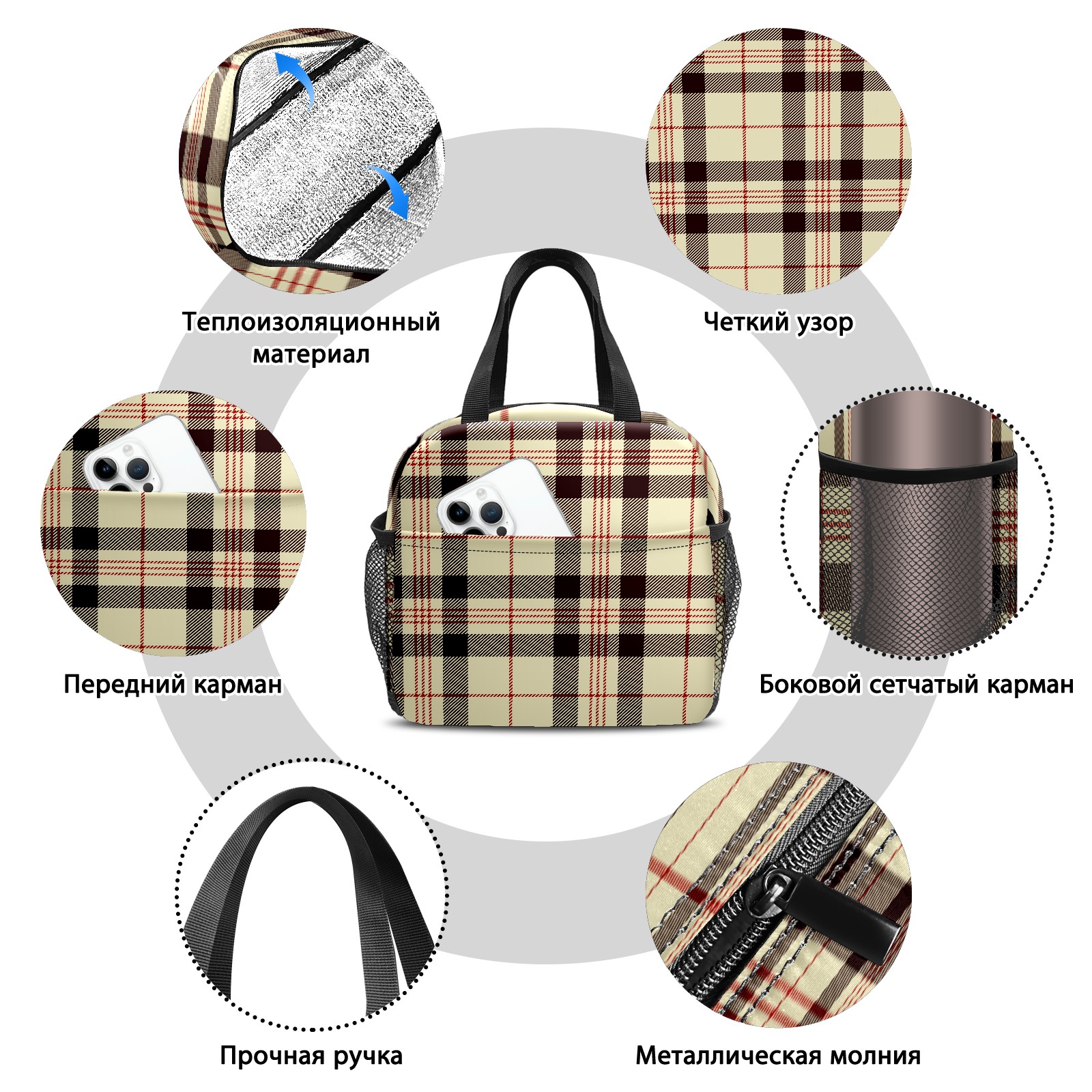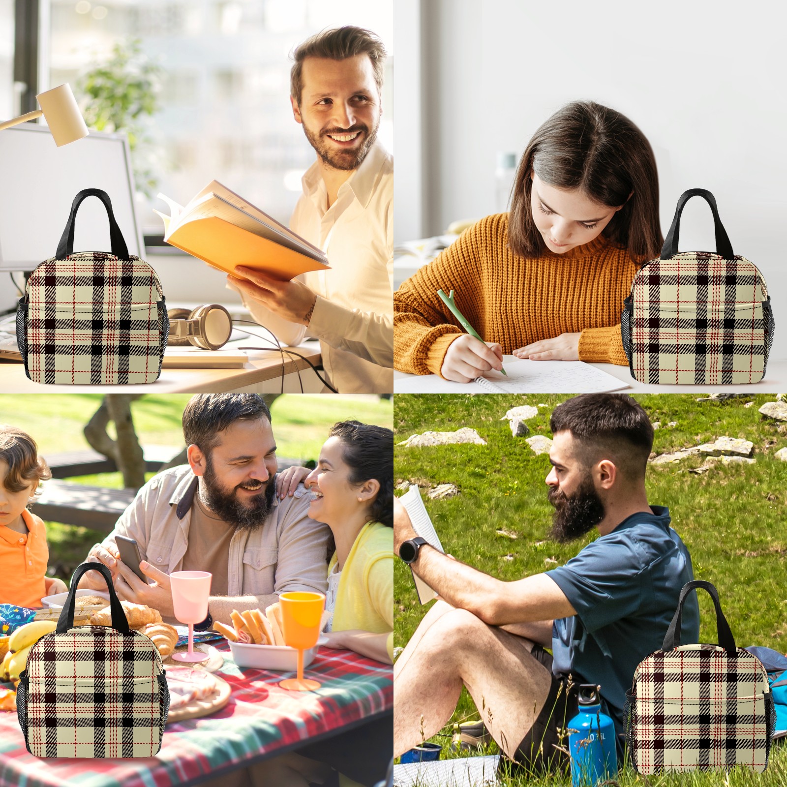小餐包 Beige Black Red Gird