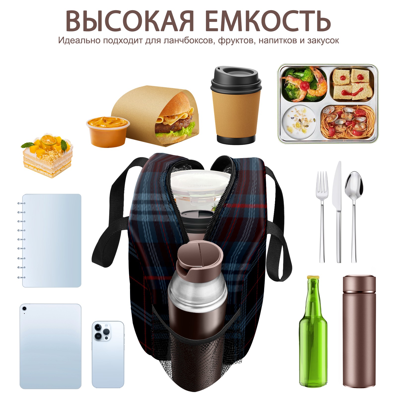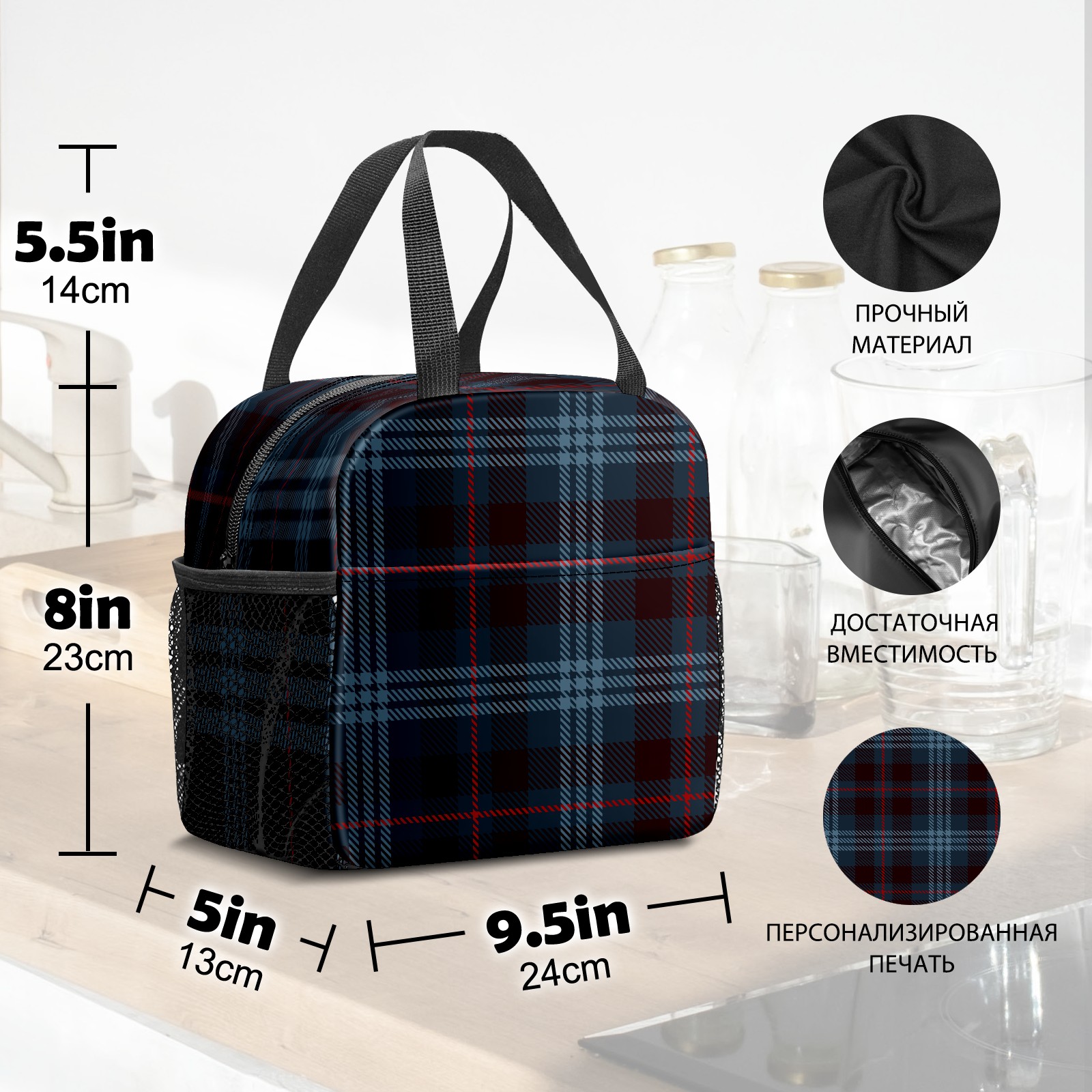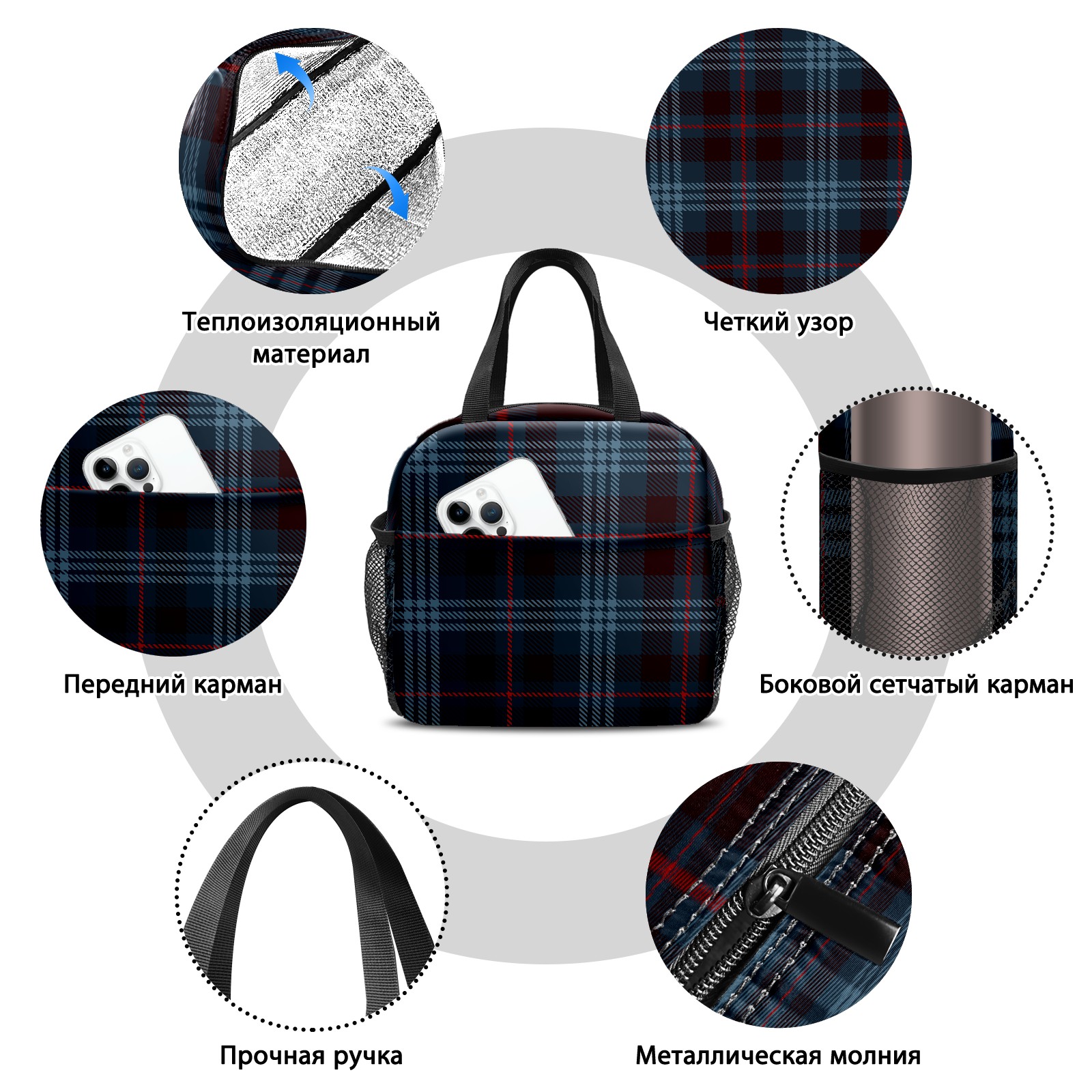 小餐包 Twill Navy Blue Red Gird