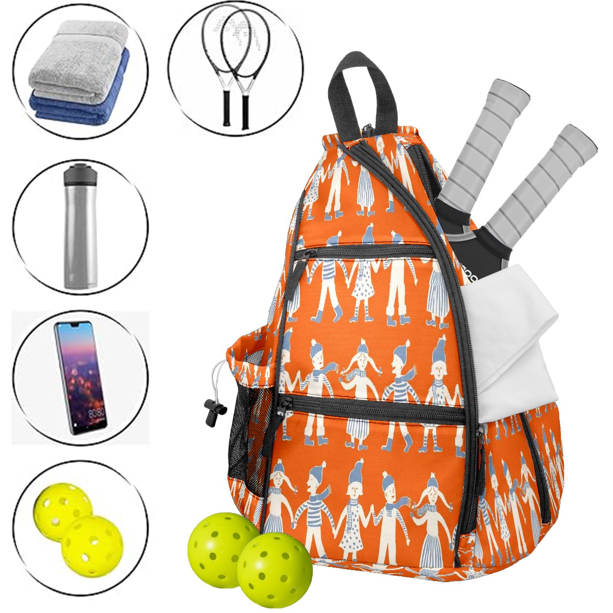 Multifunctional Pickleball Bag,Large Capacity Sports Pickleball Racket Bag, Water Bottle Holder and Fence Hook,Suitable for Both Men Women -Dancing Friends