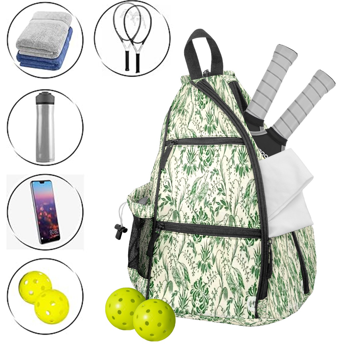 Multifunctional Pickleball Bag,Large Capacity Sports Pickleball Racket Bag, Water Bottle Holder and Fence Hook,Suitable for Both Men Women -Botanical Charm