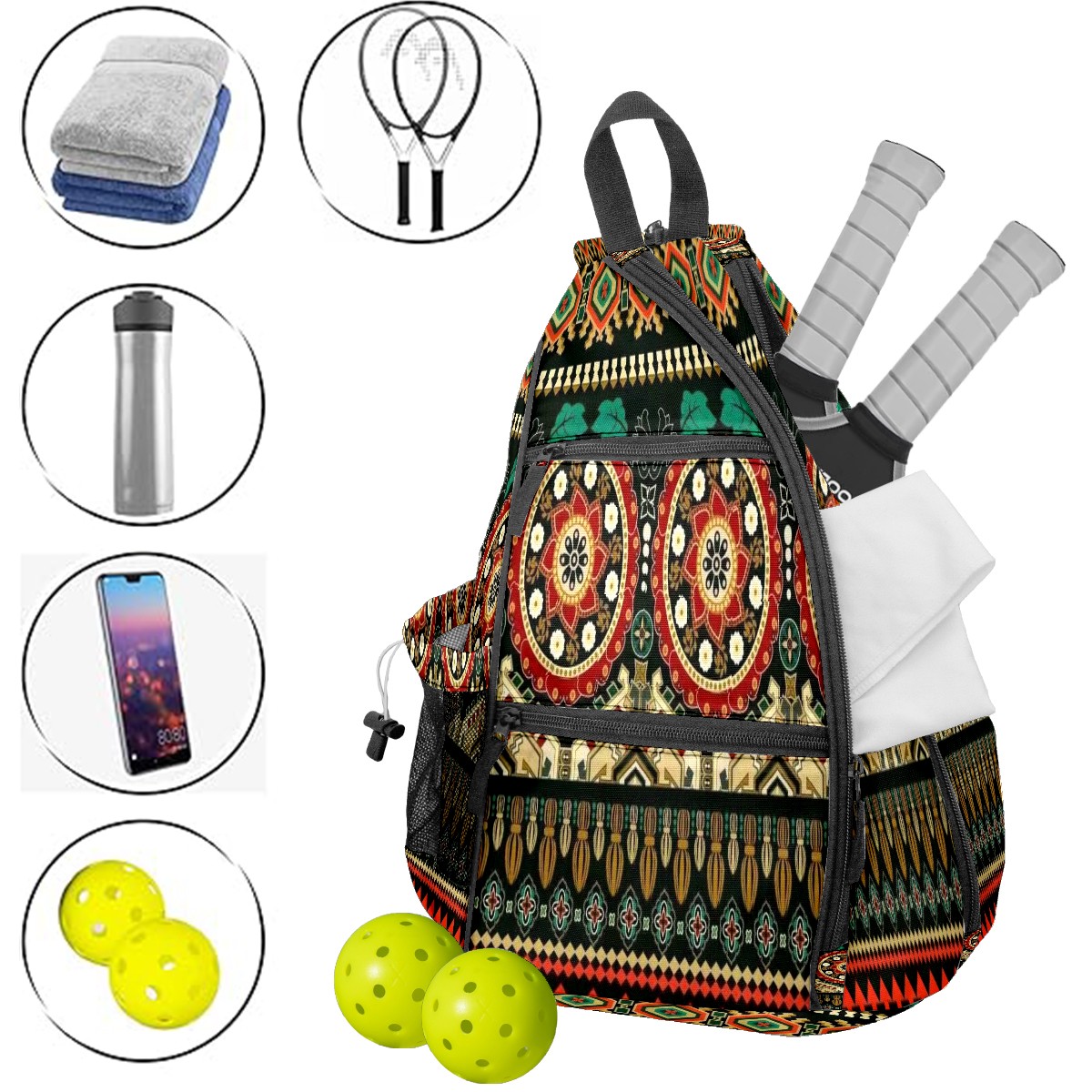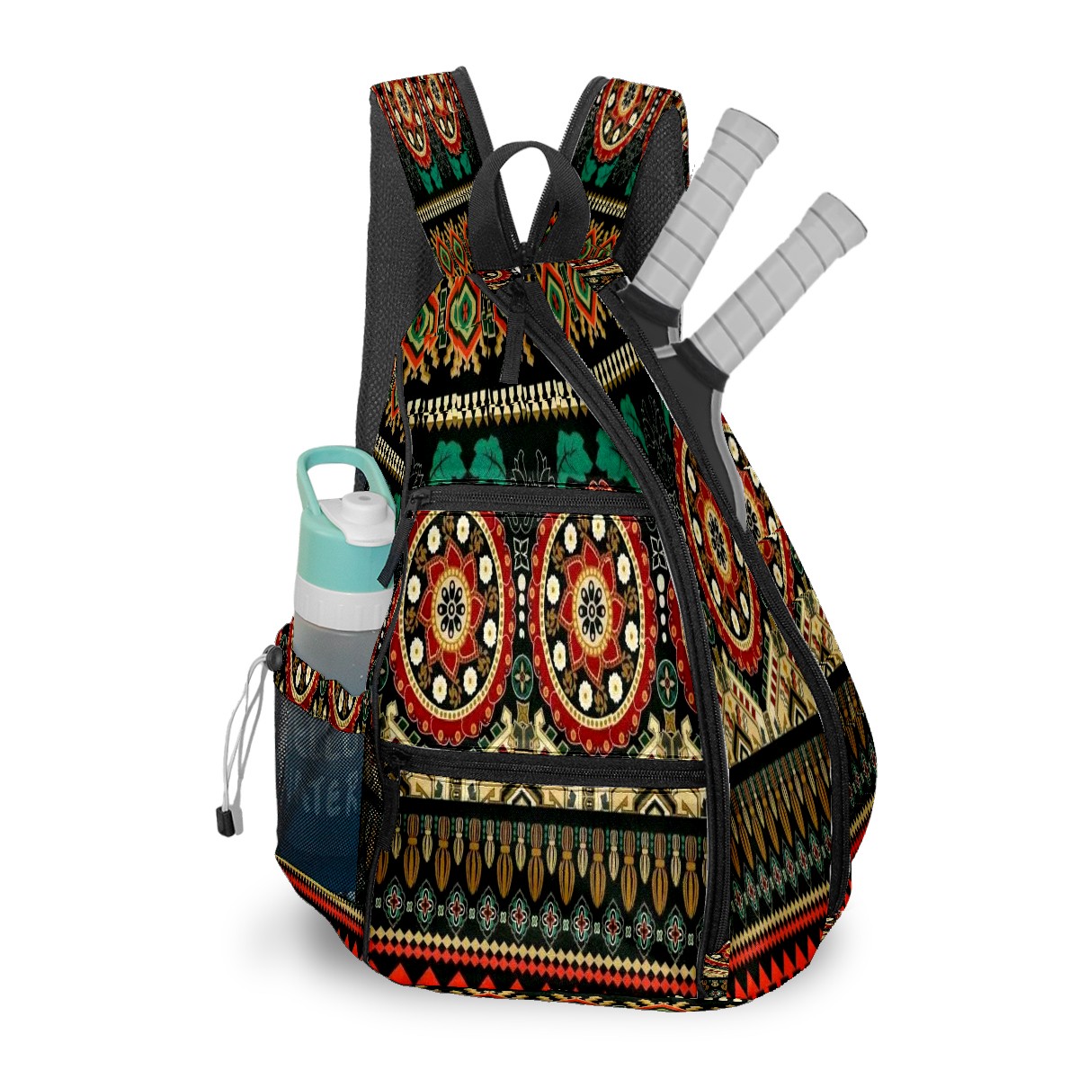 Multifunctional Pickleball Bag,Large Capacity Sports Pickleball Racket Bag, Water Bottle Holder and Fence Hook,Suitable for Both Men Women -Bohemian
