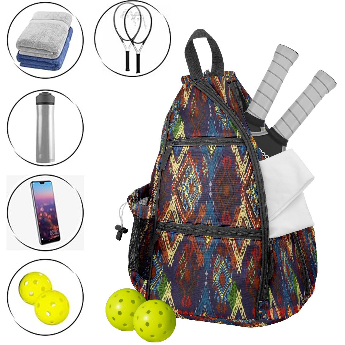Multifunctional Pickleball Bag,Large Capacity Sports Pickleball Racket Bag, Water Bottle Holder and Fence Hook,Suitable for Both Men Women -Bohemian Stars