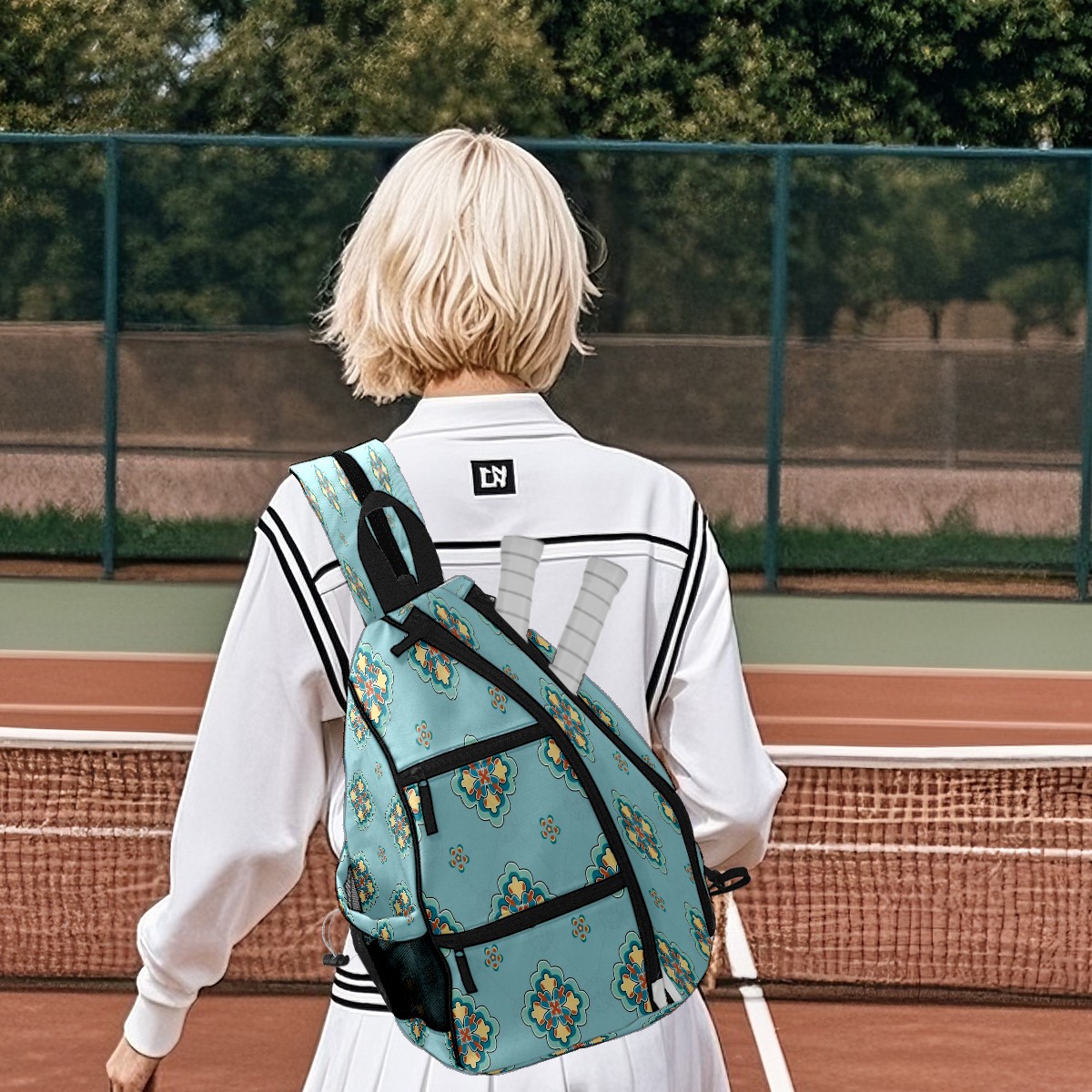 Multifunctional Pickleball Bag,Large Capacity Sports Pickleball Racket Bag, Water Bottle Holder and Fence Hook,Suitable for Both Men Women -Aqua Mandala