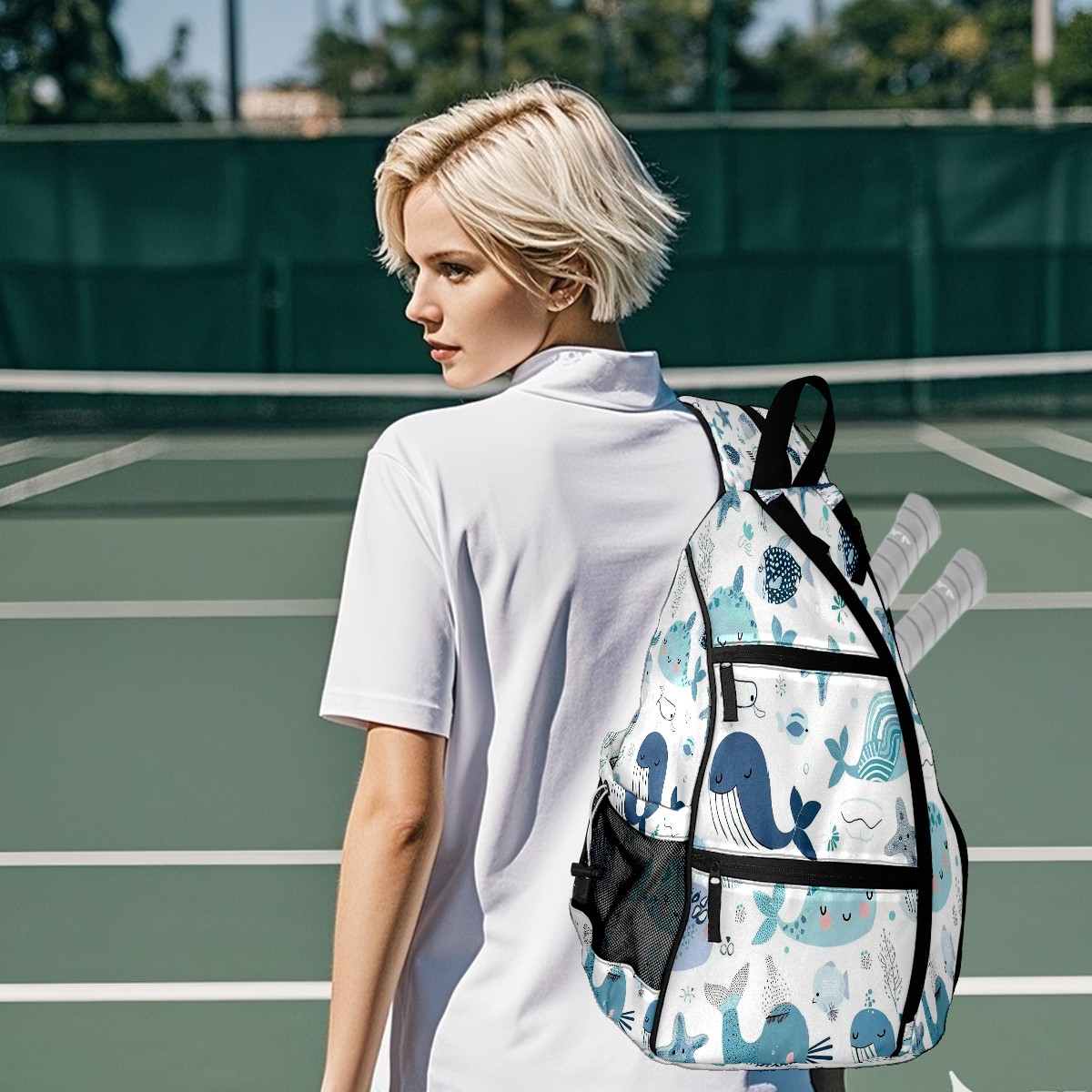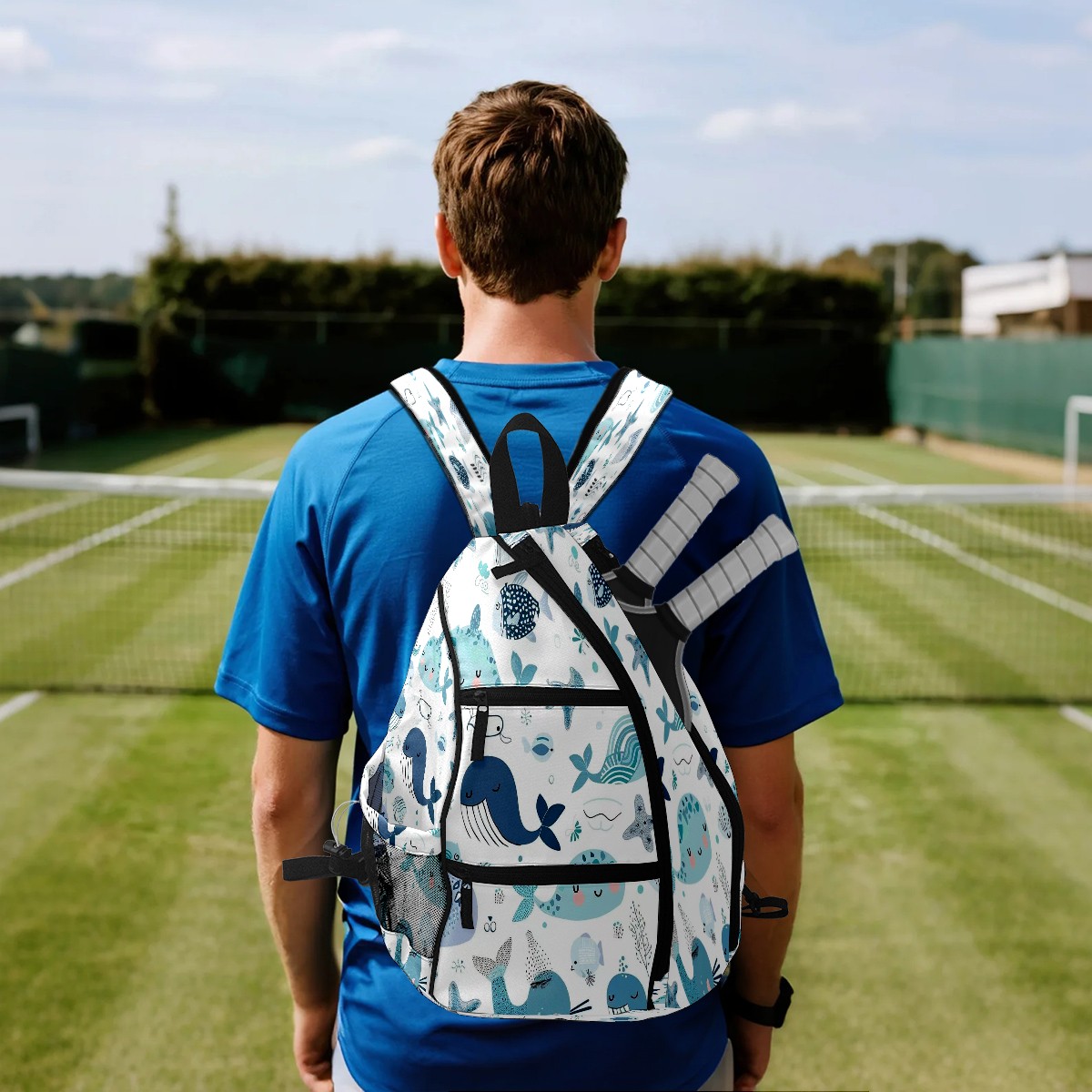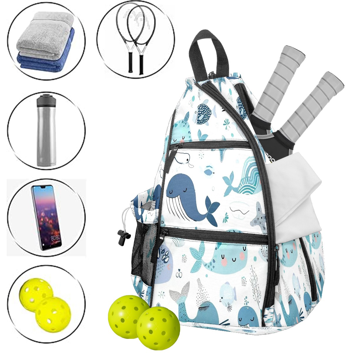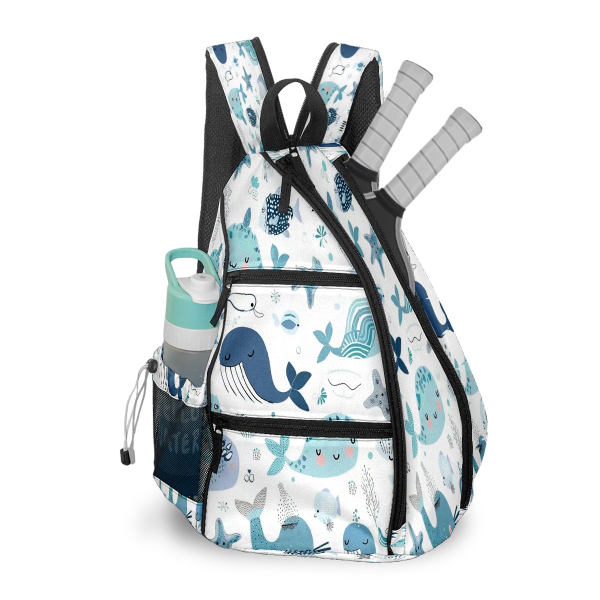 Multifunctional Pickleball Bag,Large Capacity Sports Pickleball Racket Bag, Water Bottle Holder and Fence Hook,Suitable for Both Men Women -Aquatic Cuties