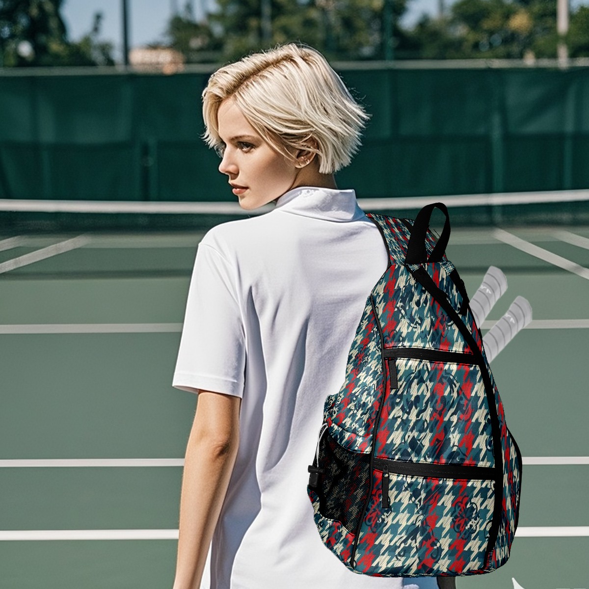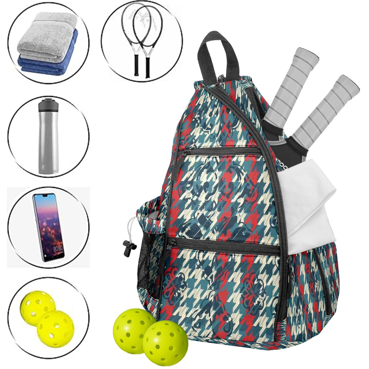 Multifunctional Pickleball Bag,Large Capacity Sports Pickleball Racket Bag, Water Bottle Holder and Fence Hook,Suitable for Both Men Women -Dynamic Tartan
