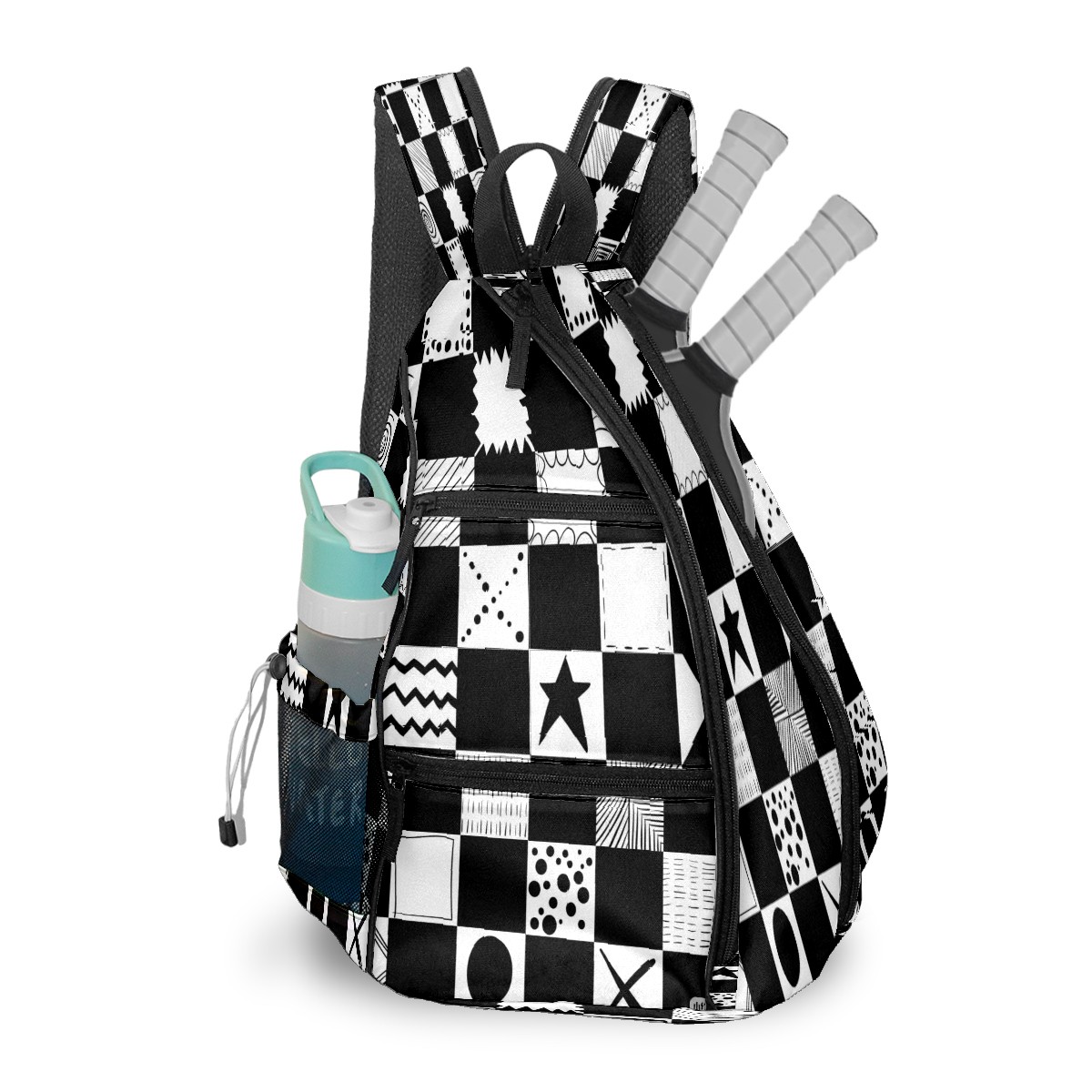 Multifunctional Pickleball Bag,Large Capacity Sports Pickleball Racket Bag, Water Bottle Holder and Fence Hook,Suitable for Both Men Women -Floral Lattice