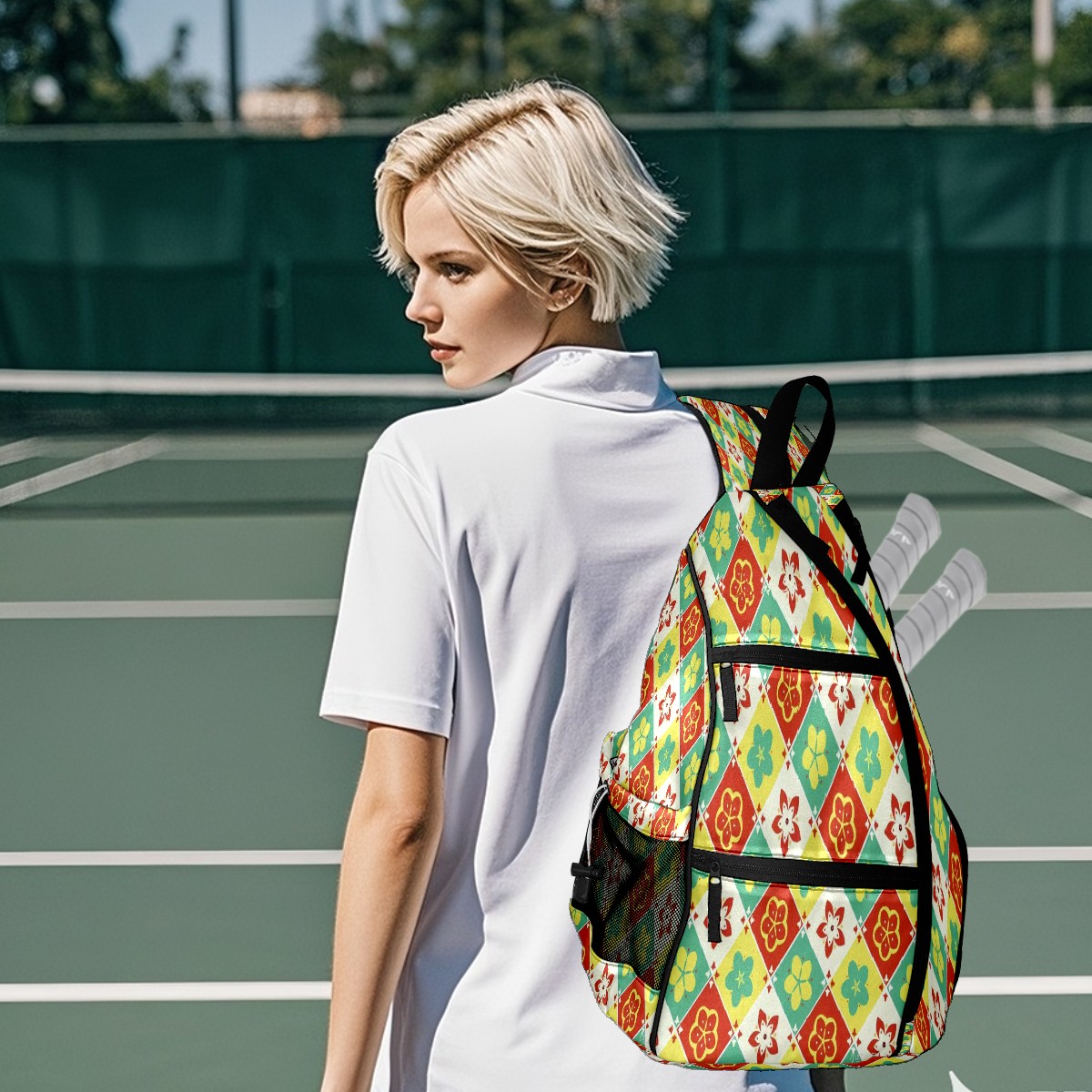 Multifunctional Pickleball Bag,Large Capacity Sports Pickleball Racket Bag, Water Bottle Holder and Fence Hook,Suitable for Both Men Women -Colorful Petals