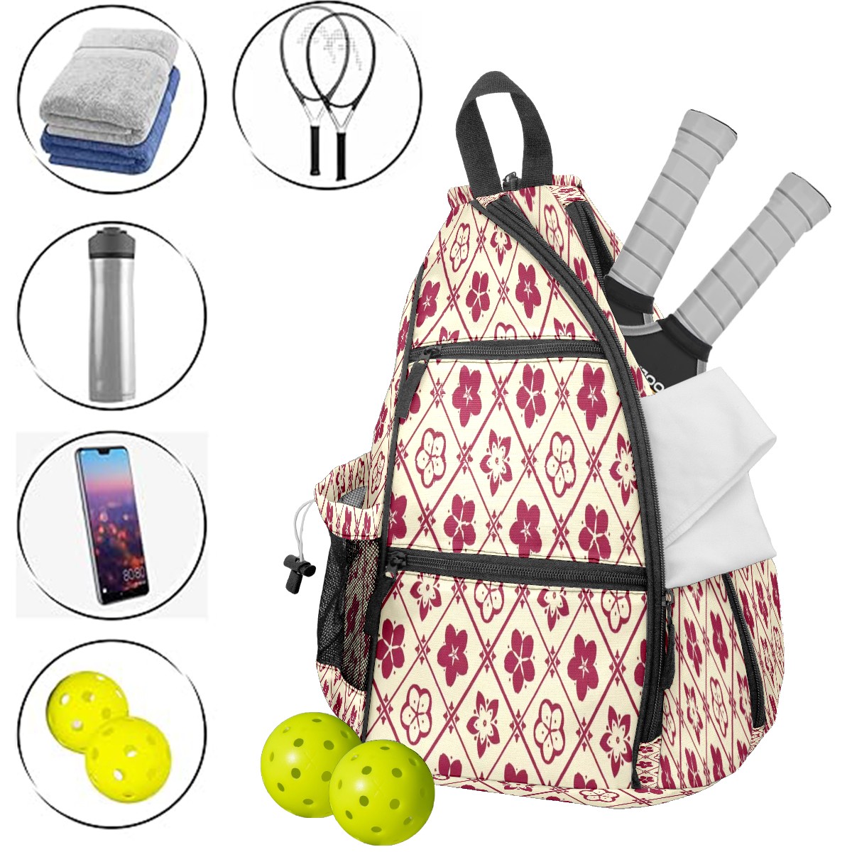 Multifunctional Pickleball Bag,Large Capacity Sports Pickleball Racket Bag, Water Bottle Holder and Fence Hook,Suitable for Both Men Women -Ruby Blooms