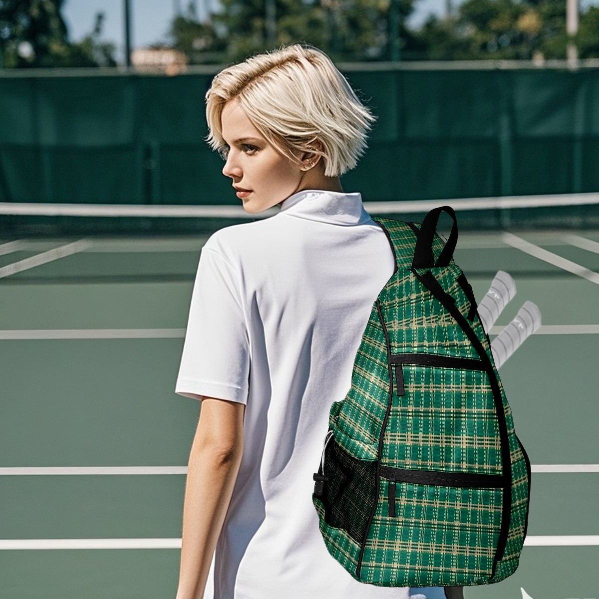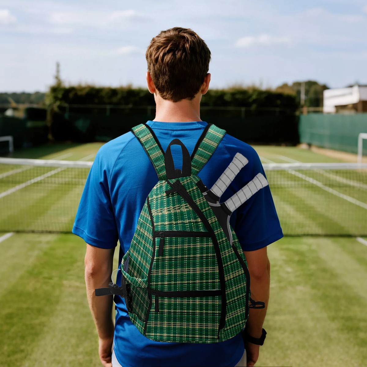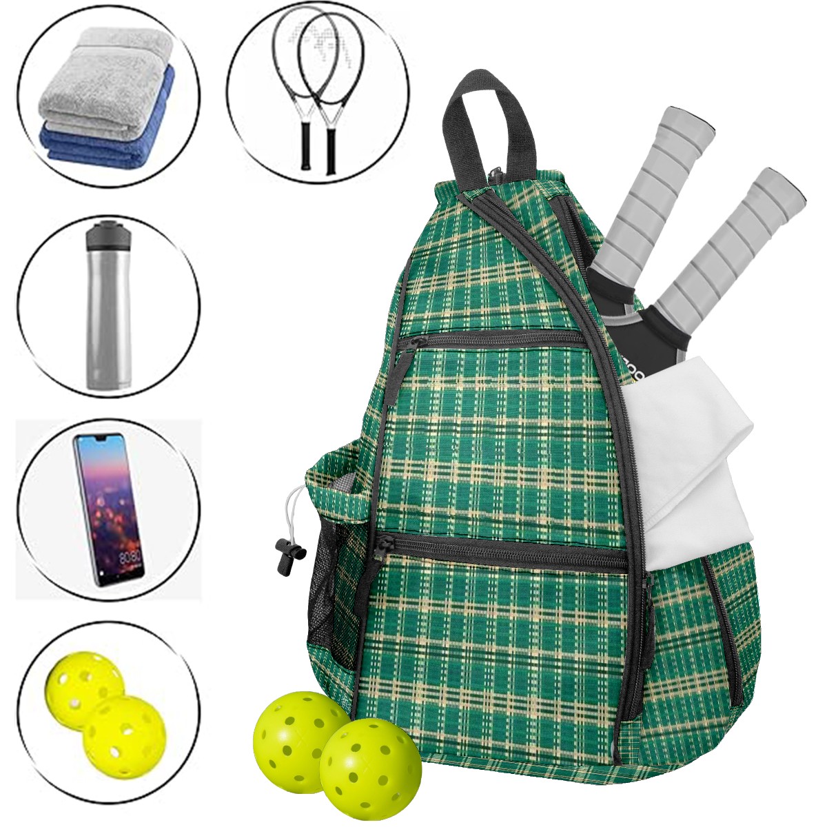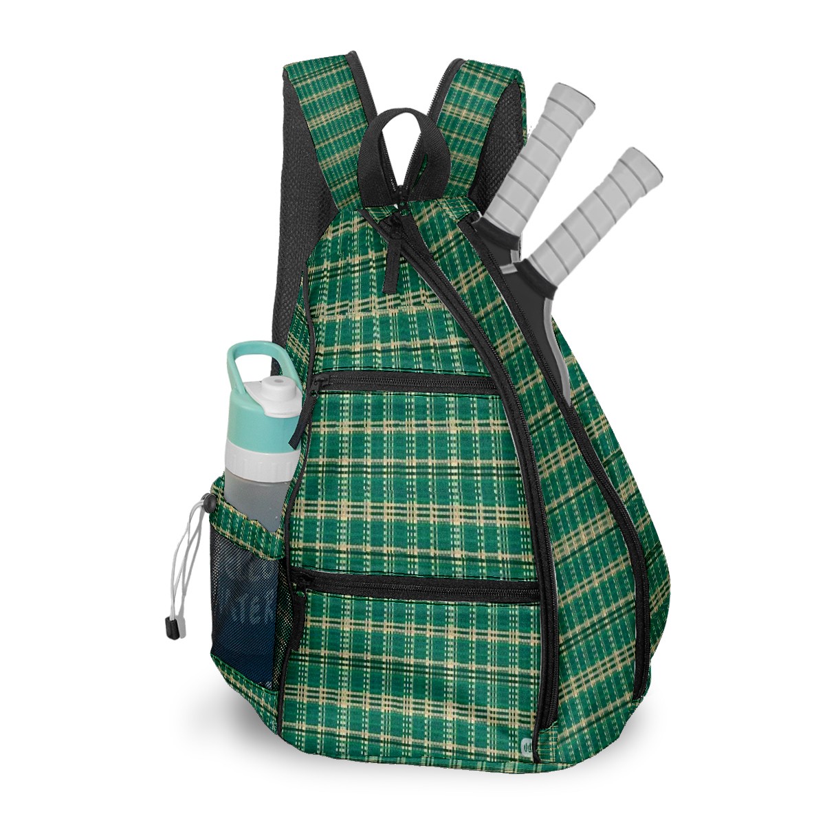 Multifunctional Pickleball Bag,Large Capacity Sports Pickleball Racket Bag, Water Bottle Holder and Fence Hook,Suitable for Both Men Women -Emerald Plaid