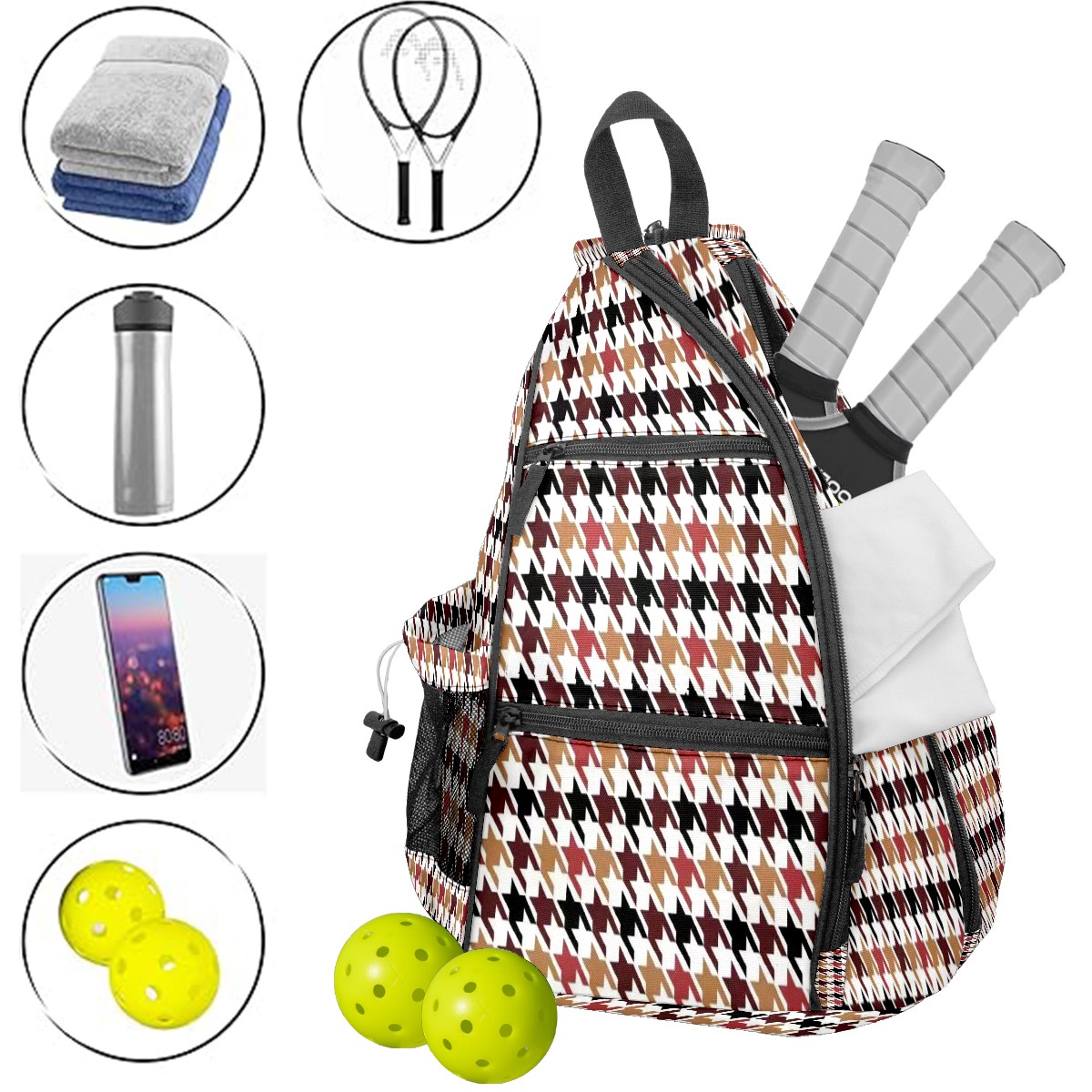 Multifunctional Pickleball Bag,Large Capacity Sports Pickleball Racket Bag, Water Bottle Holder and Fence Hook,Suitable for Both Men Women -Retro Houndstooth