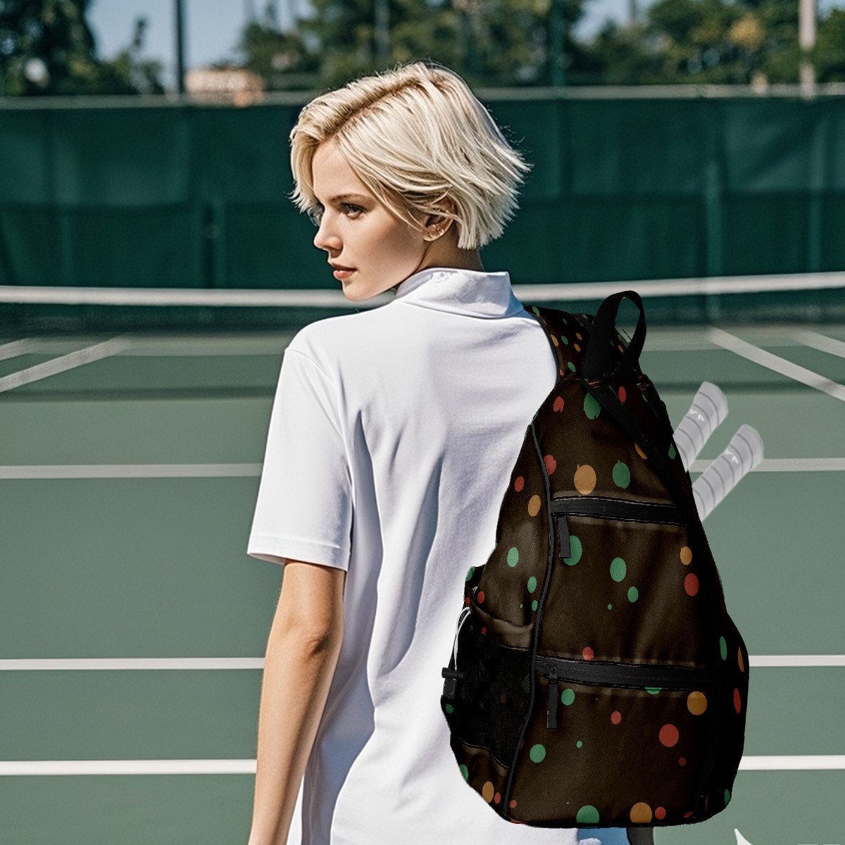 Multifunctional Pickleball Bag,Large Capacity Sports Pickleball Racket Bag, Water Bottle Holder and Fence Hook,Suitable for Both Men Women -Holiday Polka