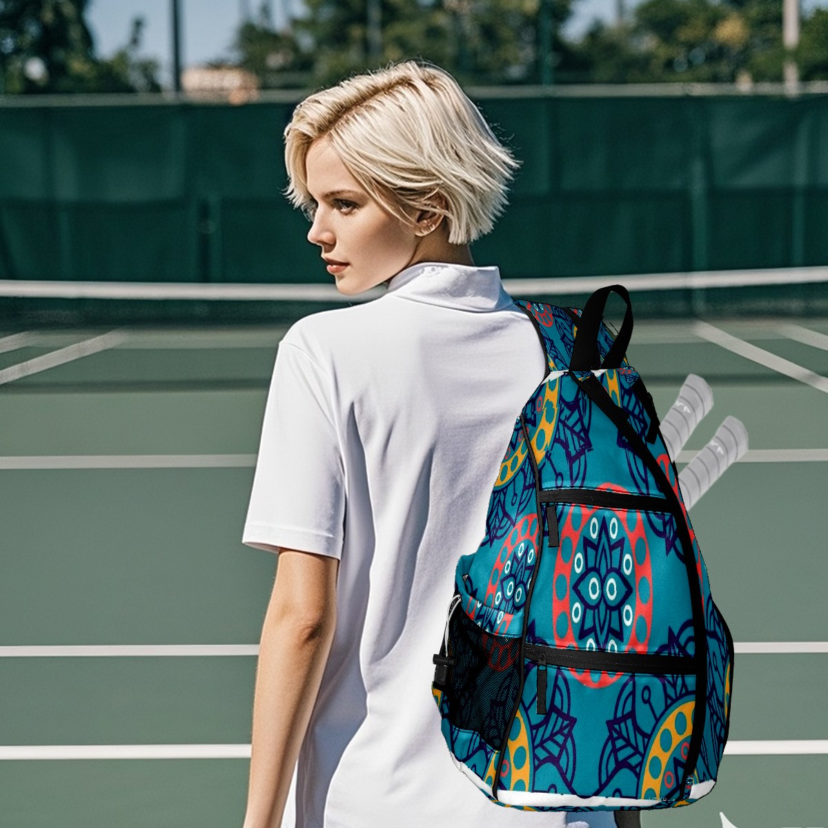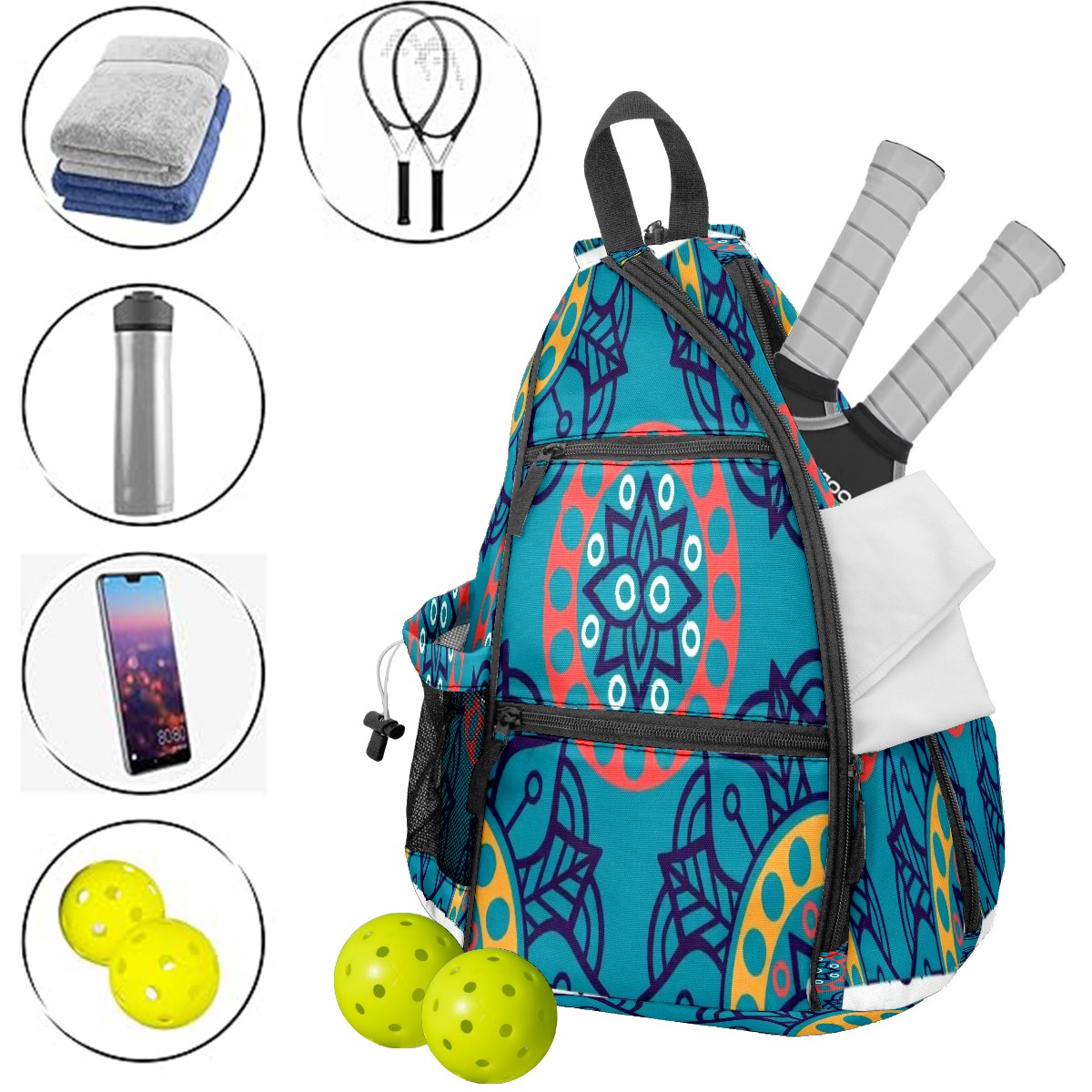 Multifunctional Pickleball Bag,Large Capacity Sports Pickleball Racket Bag, Water Bottle Holder and Fence Hook,Suitable for Both Men Women -Mandala Bloom