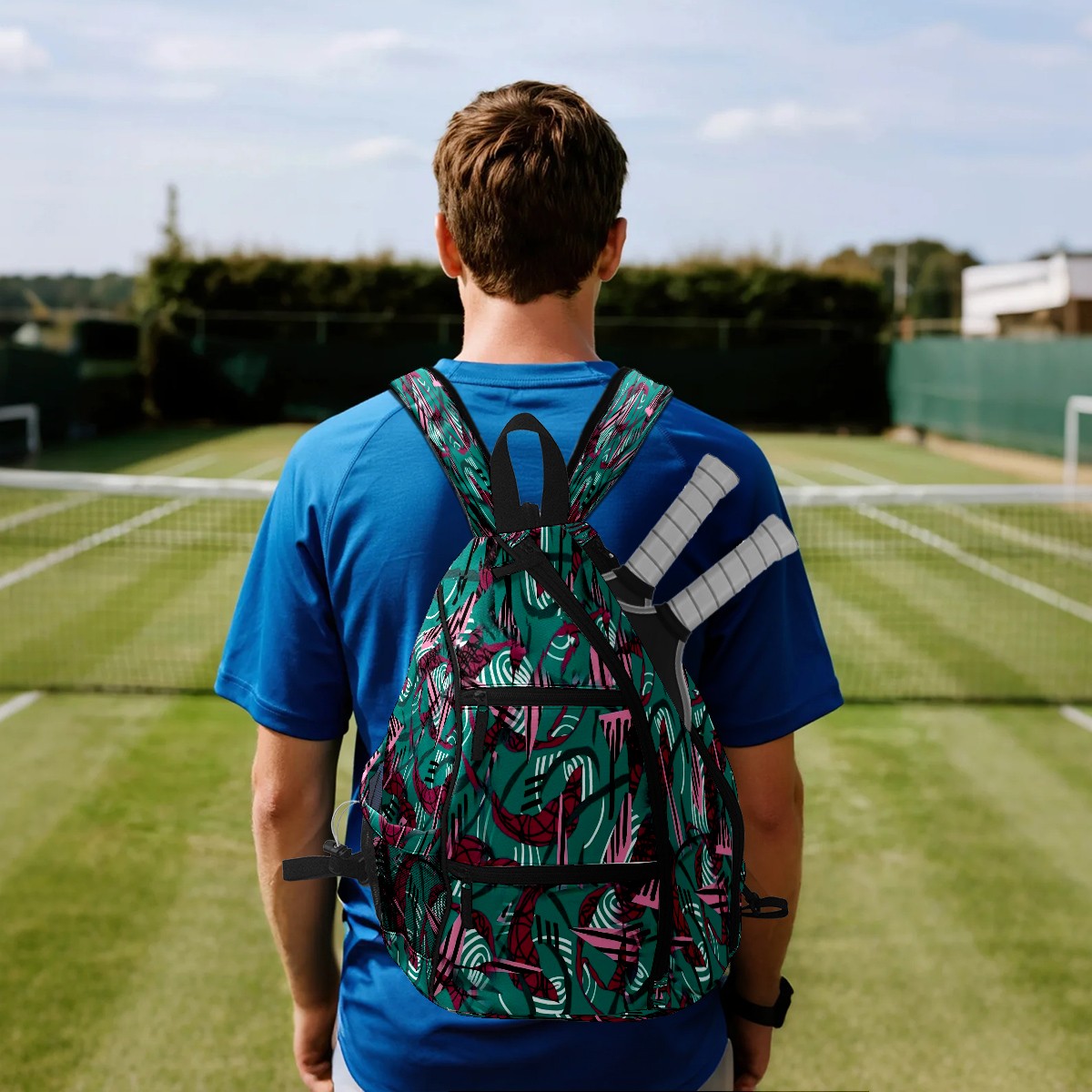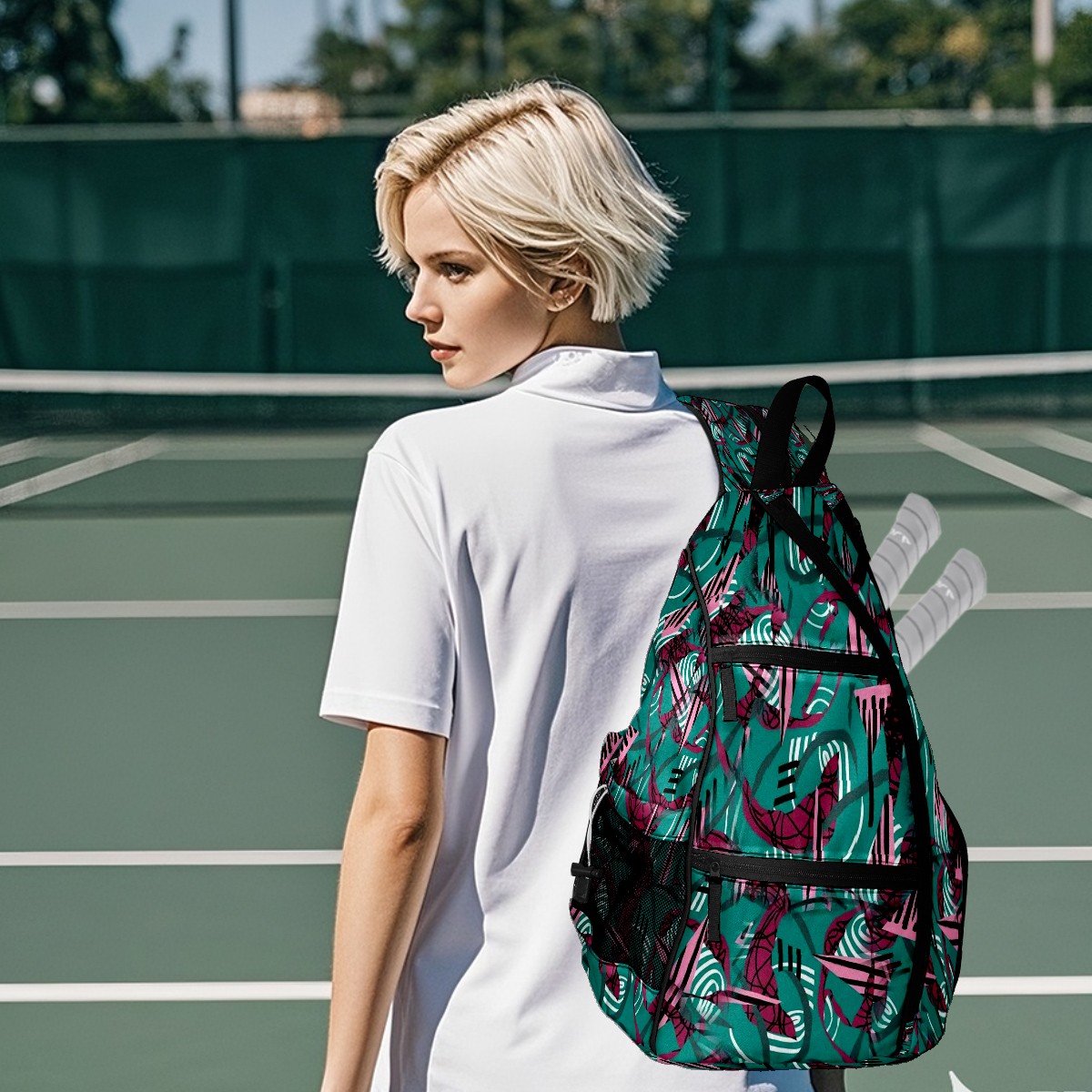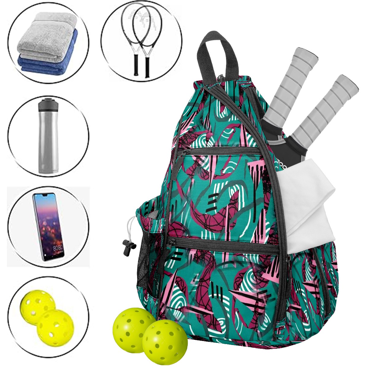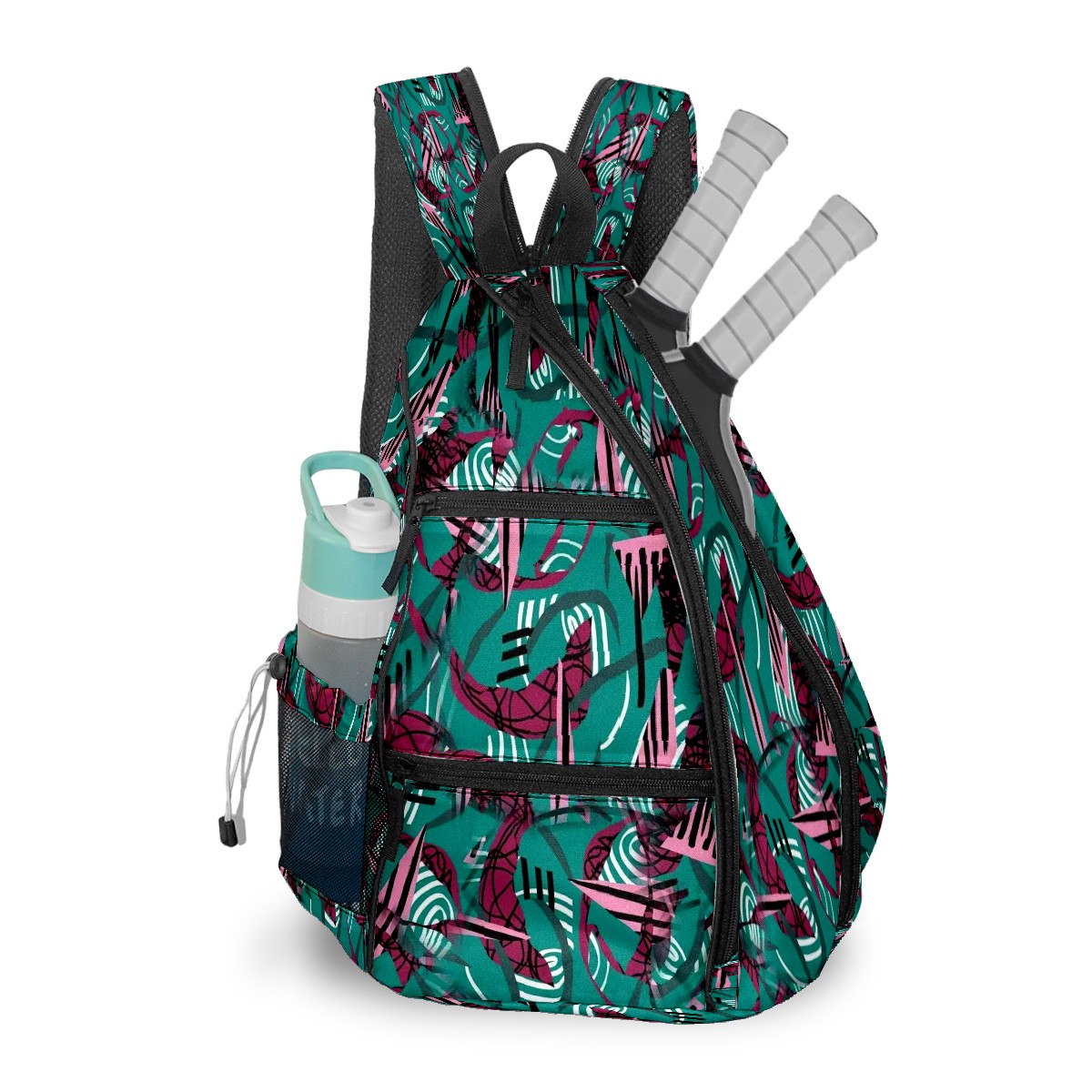 Multifunctional Pickleball Bag,Large Capacity Sports Pickleball Racket Bag, Water Bottle Holder and Fence Hook,Suitable for Both Men Women -Energetic Swirls