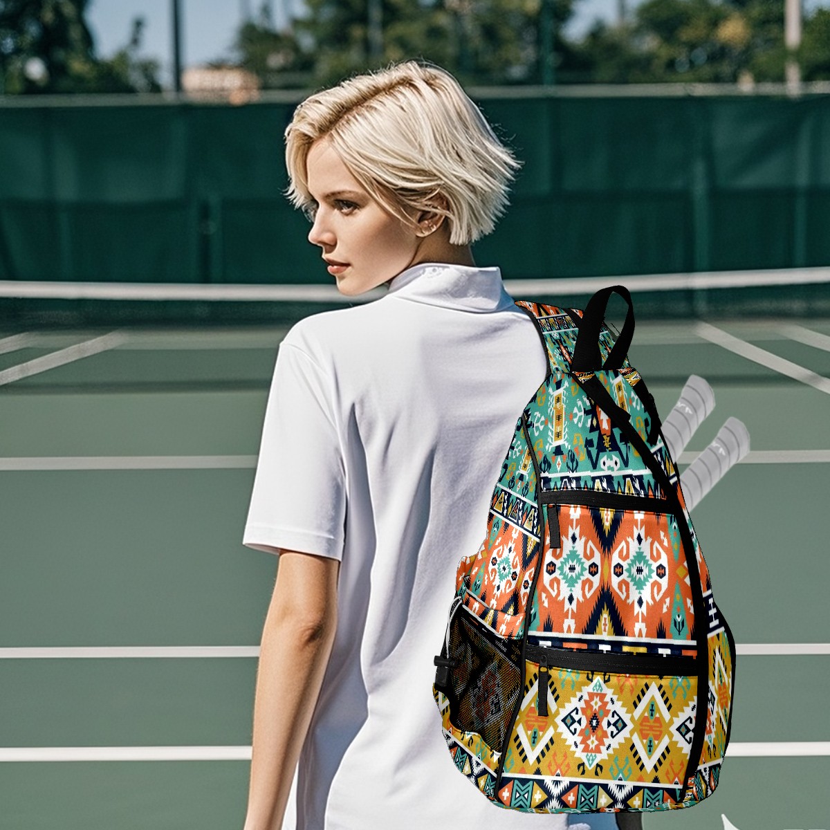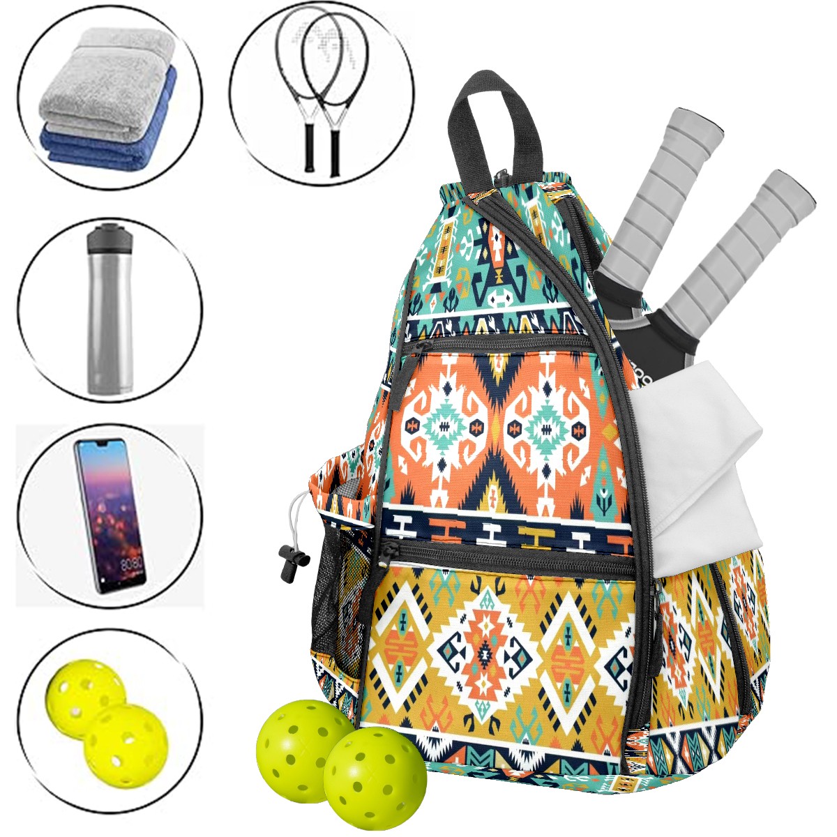 Multifunctional Pickleball Bag,Large Capacity Sports Pickleball Racket Bag, Water Bottle Holder and Fence Hook,Suitable for Both Men Women -Bohemian
