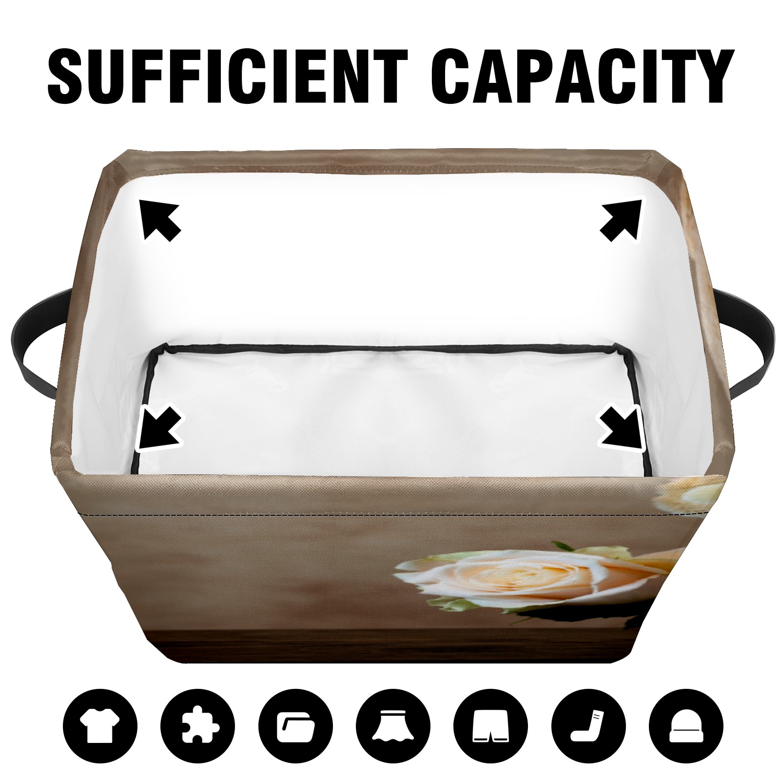 • 【Материал】Оксфордская ткань из полиэстера 600D; ручки изготовлены из полиэстера. 【Описание материала】Внешняя ткань: Оксфордская ткань полотняного переплетения высокой плотности 300D (ПВХ); Подкладка: белая ткань 750D; Ручки: черная композитная ткань 290T. 【Размер】26x35x21 см (10x14x8 дюймов) 【Описание продукта】Эта корзина для хранения с ручками с обеих сторон предлагает достаточно места для хранения предметов разных размеров, что делает ее подходящей для различных случаев, таких как дом, офис и школа. Ручки с обеих сторон закреплены гвоздями для долговечности. Прочный металлический каркас окружает корзину, поддерживая ее форму. Складная корзина для хранения: Наши корзины для хранения легко складываются, когда не используются. Эти ящики для хранения изготовлены из легко моющейся оксфордской ткани и при необходимости могут быть аккуратно протерты мягким мылом и водой. Из-за внутреннего металлического каркаса и жесткого дна машинная стирка не рекомендуется. 【Подходящие сценарии использования】Дом, офис и школа 【Инструкции по стирке】Рекомендуется ручная стирка; избегайте длительного воздействия прямых солнечных лучей.
