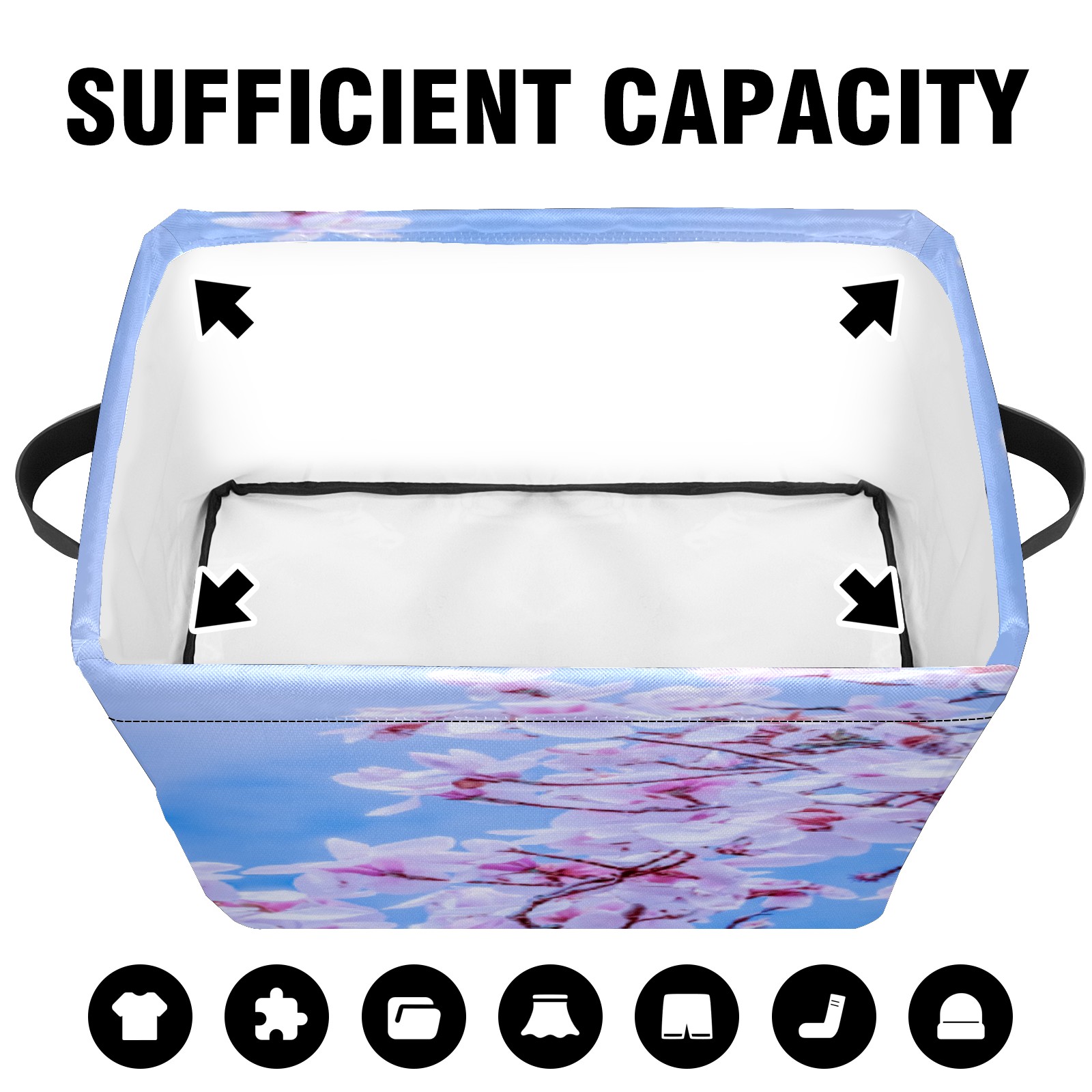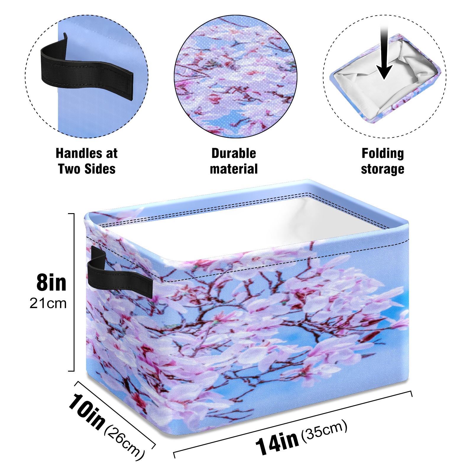 【Материал】Оксфордская ткань из полиэстера 600D; ручки изготовлены из полиэстера. 【Описание материала】Внешняя ткань: Оксфордская ткань полотняного переплетения высокой плотности 300D (ПВХ); Подкладка: белая ткань 750D; Ручки: черная композитная ткань 290T. 【Размер】26x35x21 см (10x14x8 дюймов) 【Описание продукта】Эта корзина для хранения с ручками с обеих сторон предлагает достаточно места для хранения предметов разных размеров, что делает ее подходящей для различных случаев, таких как дом, офис и школа. Ручки с обеих сторон закреплены гвоздями для долговечности. Прочный металлический каркас окружает корзину, поддерживая ее форму. Складная корзина для хранения: Наши корзины для хранения легко складываются, когда не используются. Эти ящики для хранения изготовлены из легко моющейся оксфордской ткани и при необходимости могут быть аккуратно протерты мягким мылом и водой. Из-за внутреннего металлического каркаса и жесткого дна машинная стирка не рекомендуется. 【Подходящие сценарии использования】Дом, офис и школа 【Инструкции по стирке】Рекомендуется ручная стирка; избегайте длительного воздействия прямых солнечных лучей.