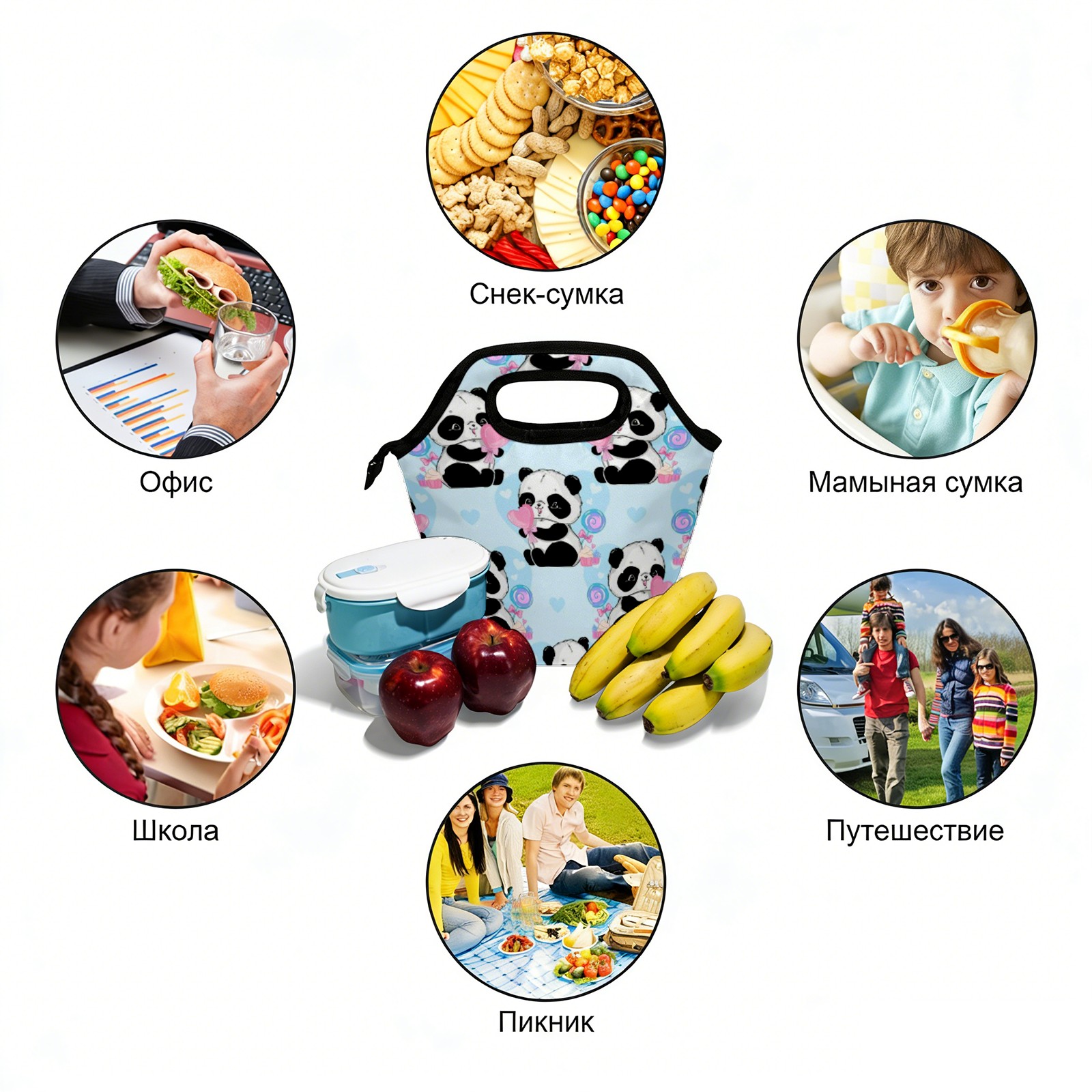 手提餐包 Panda Bear Candy Blue