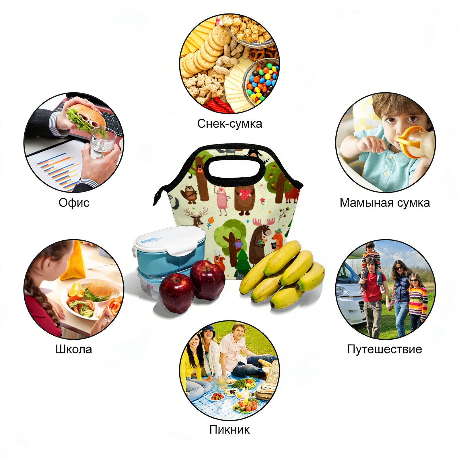 手提餐包 Funny Happy Forest Bear Fox Animals