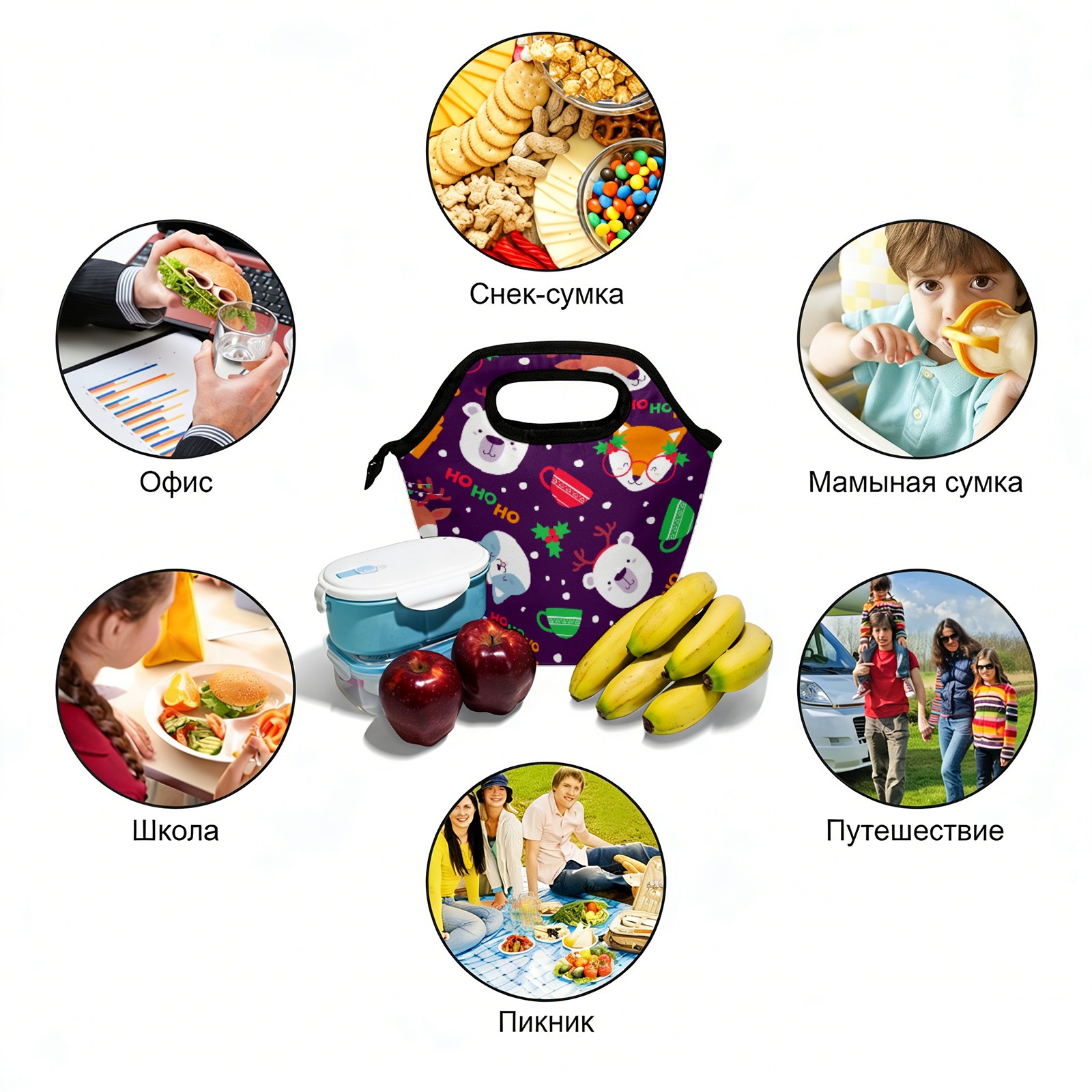 手提餐包 Christmas Bear Reindeer Cat - Cartoon Cute Animal