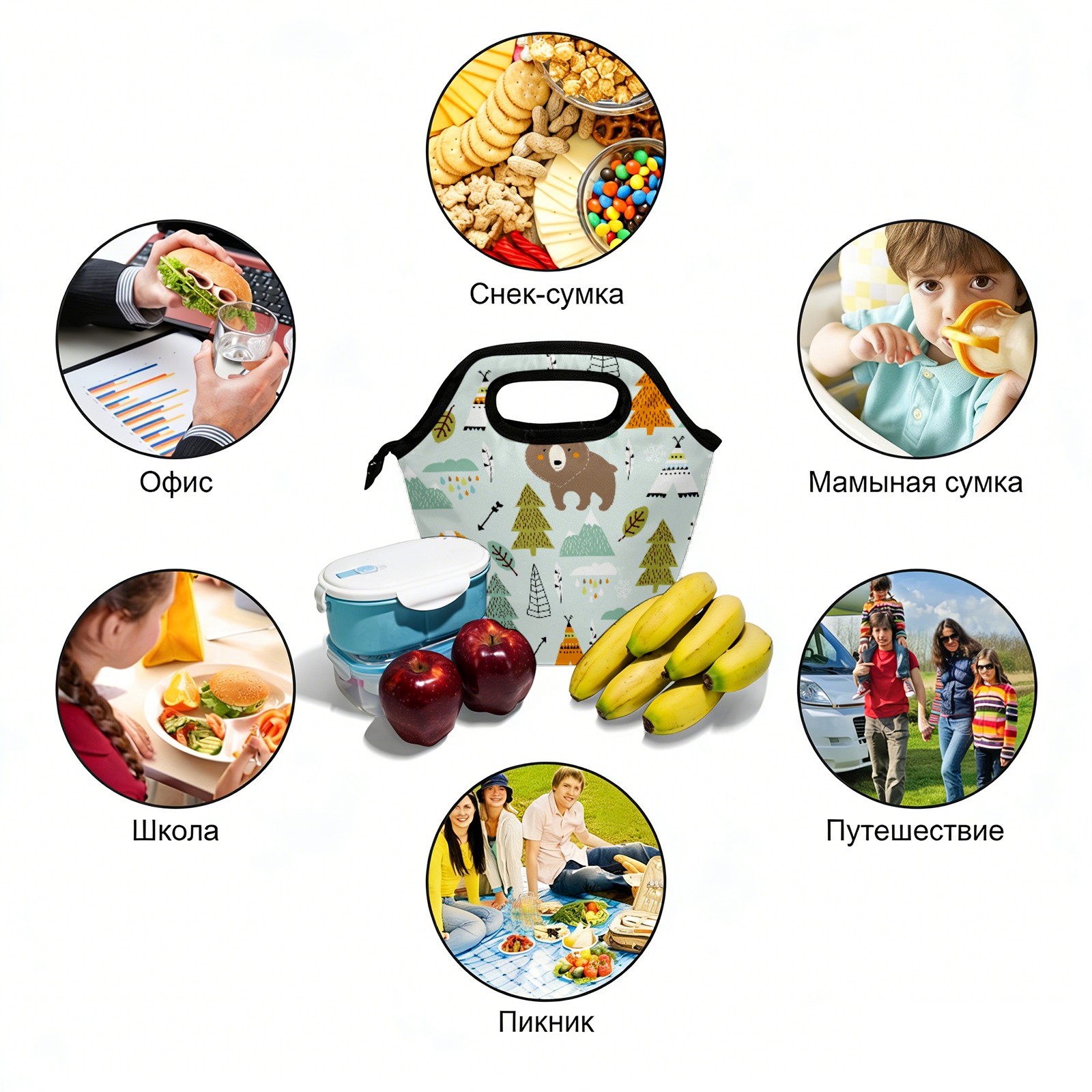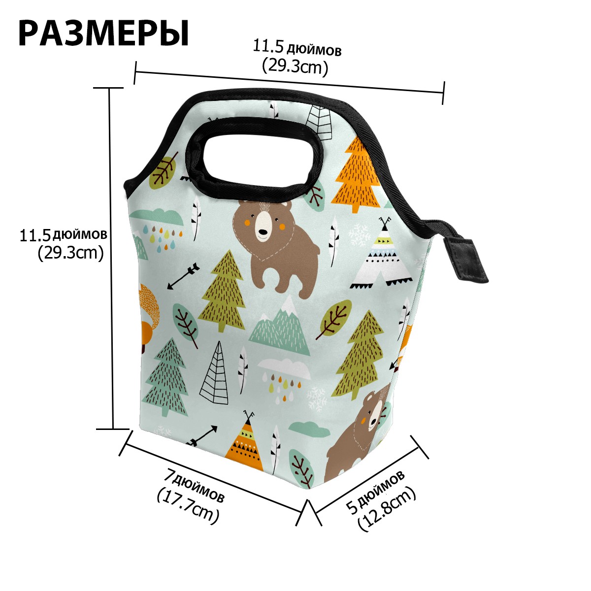 手提餐包 Cartoon Animal Forest Fox Bear Arrow Ethnic