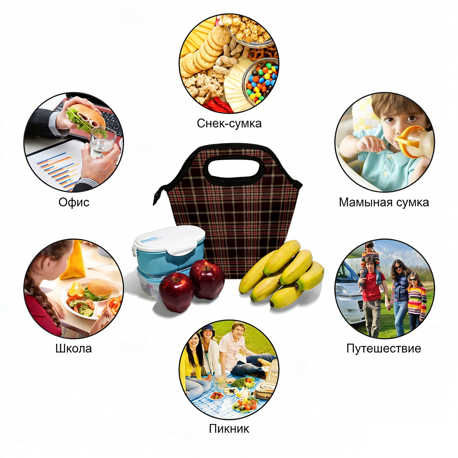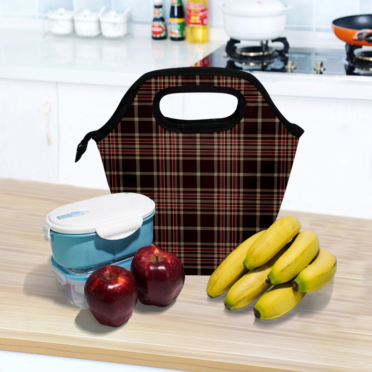 手提餐包 Wine Red White Green Plaid