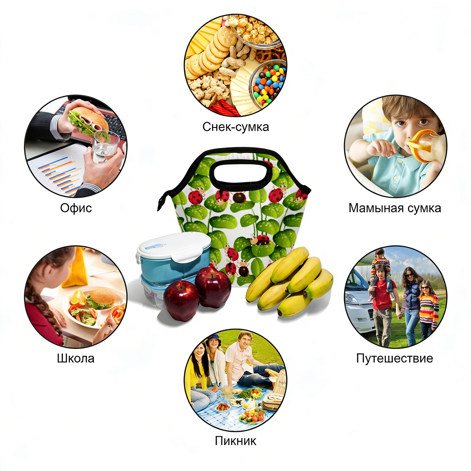 手提餐包 Spring Insect Ladybugs Ladybirds Green Leaves