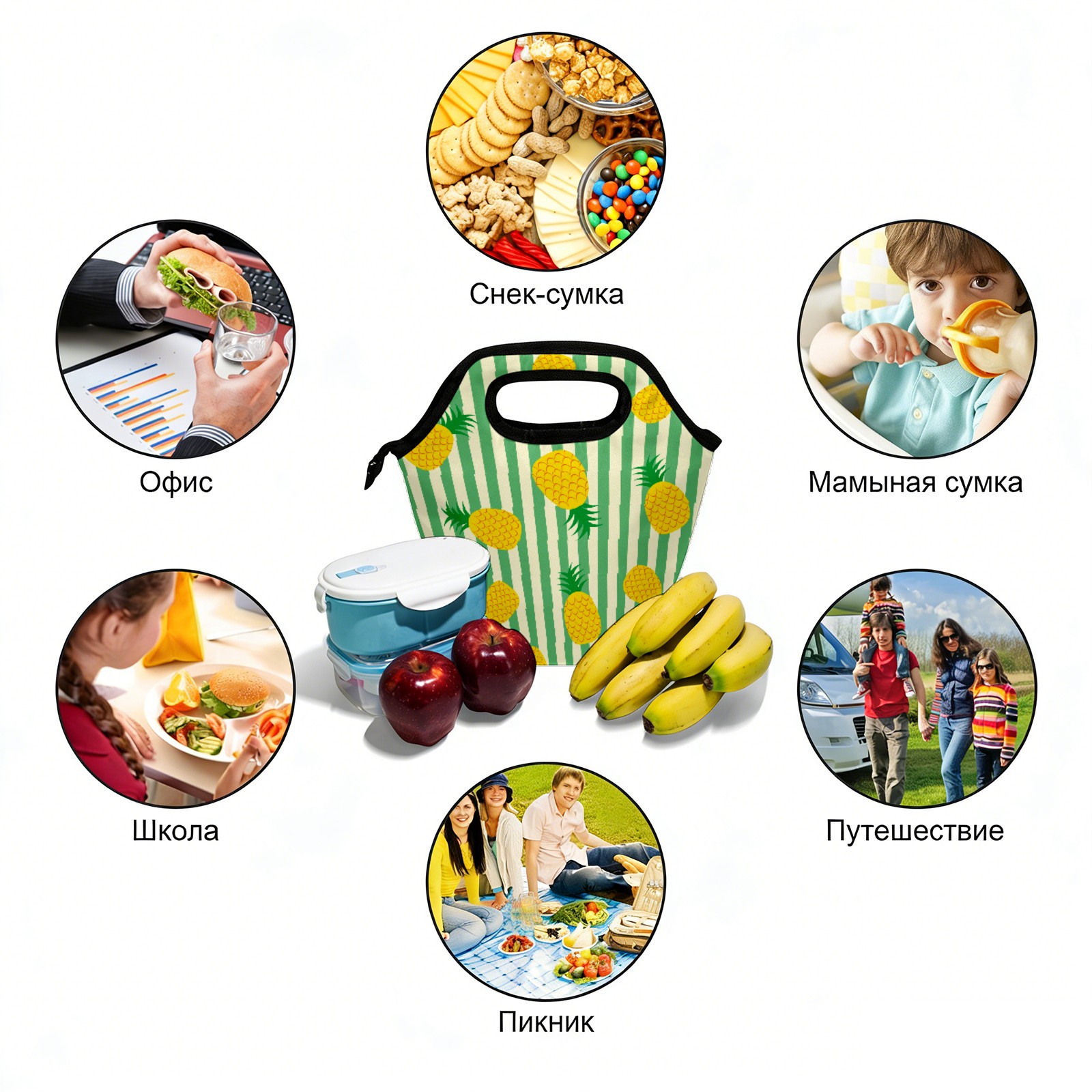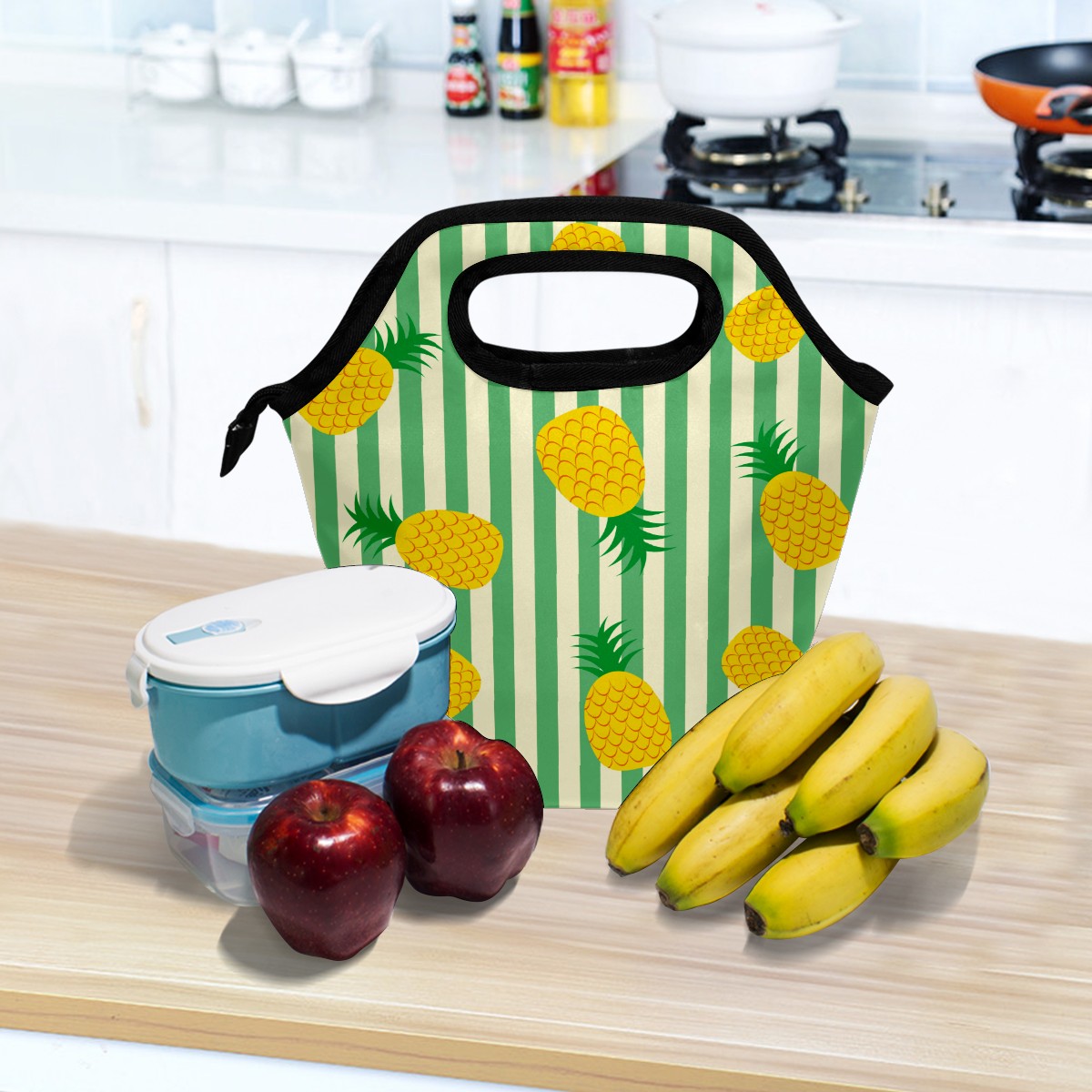手提餐包 Retro Pineapple Green Stripes Pattern