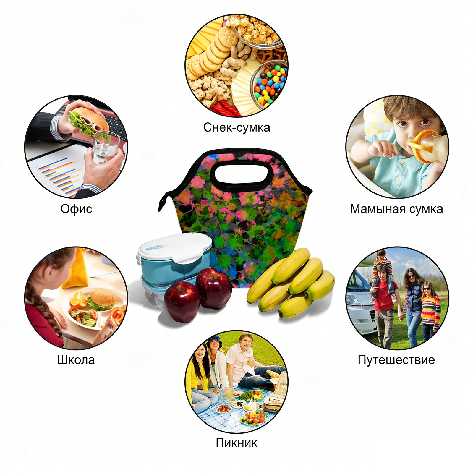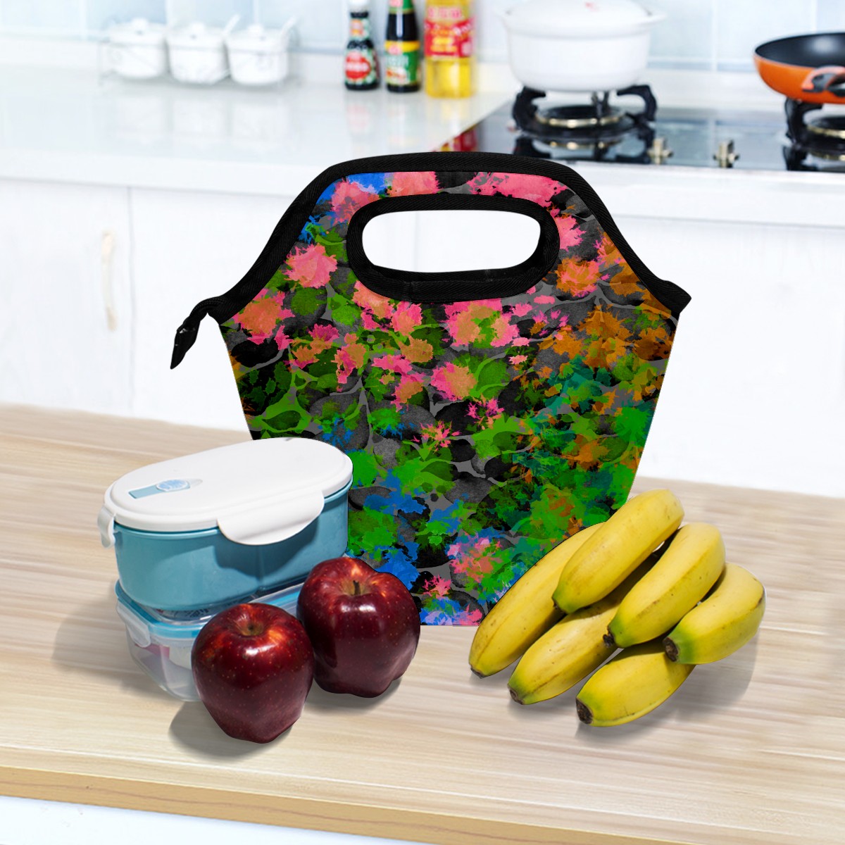 手提餐包 Flowers leaves green pink