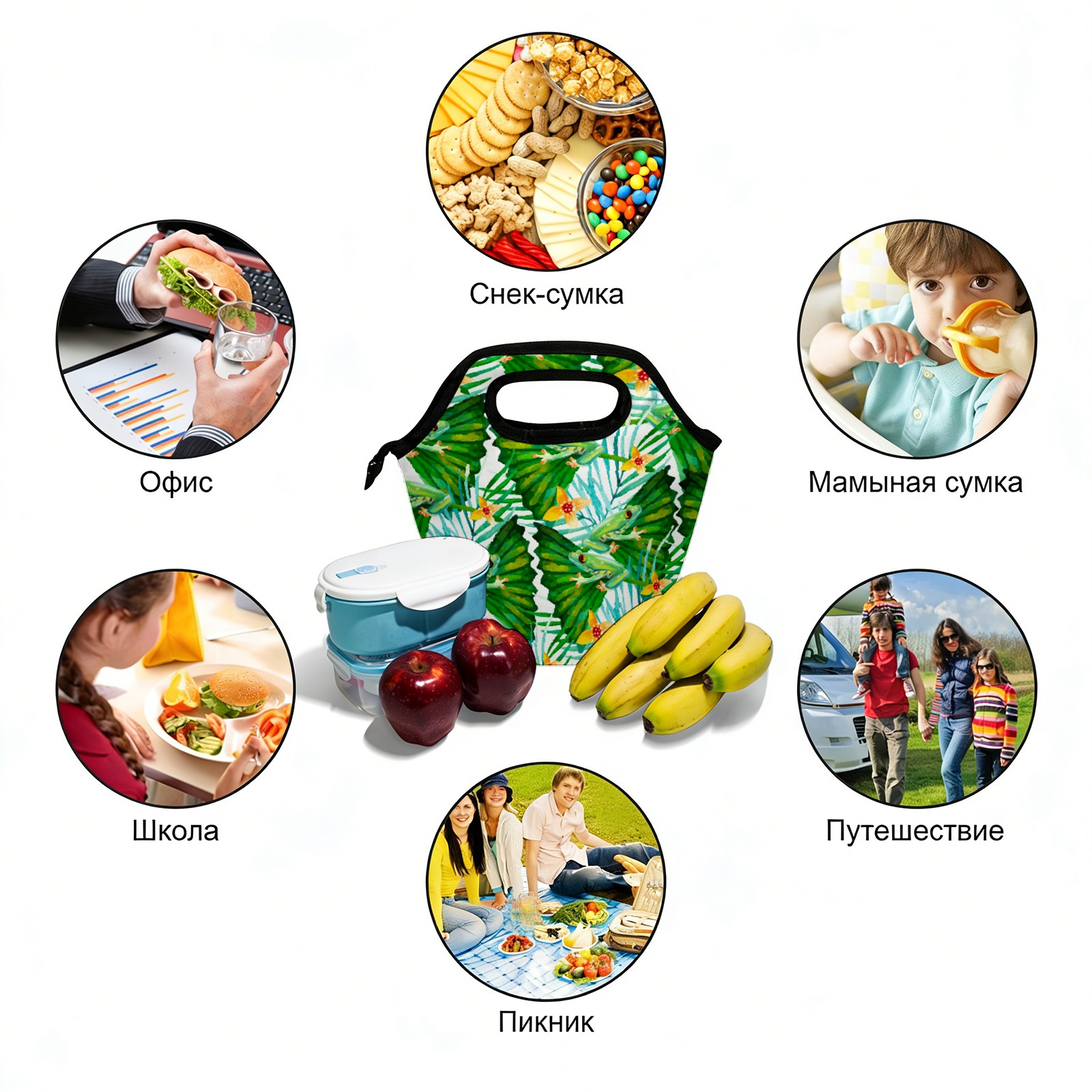 手提餐包 Flowers Frogs Green
