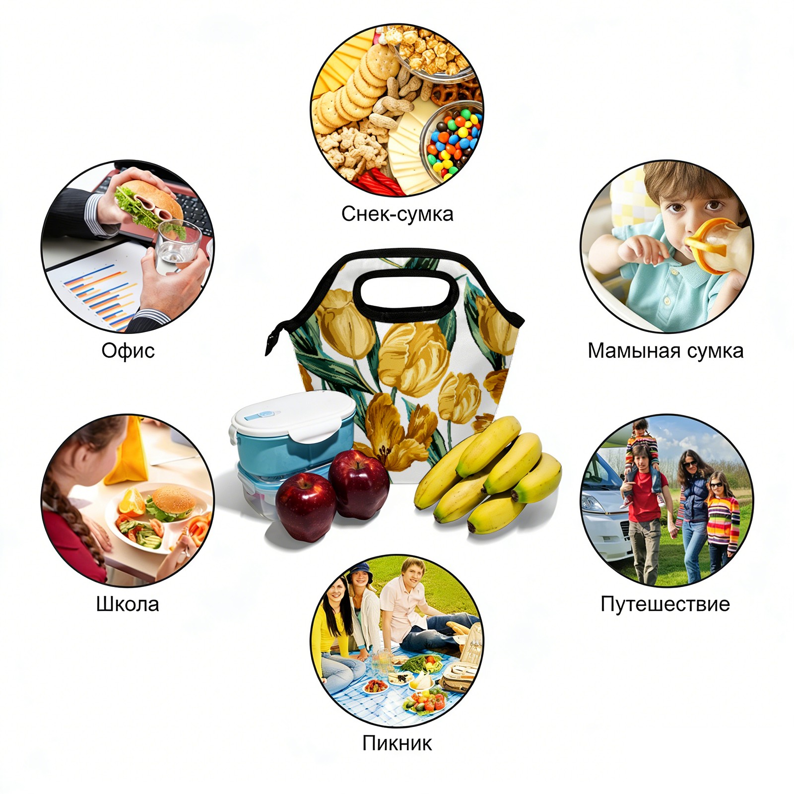 手提餐包 Yellow Flower Green