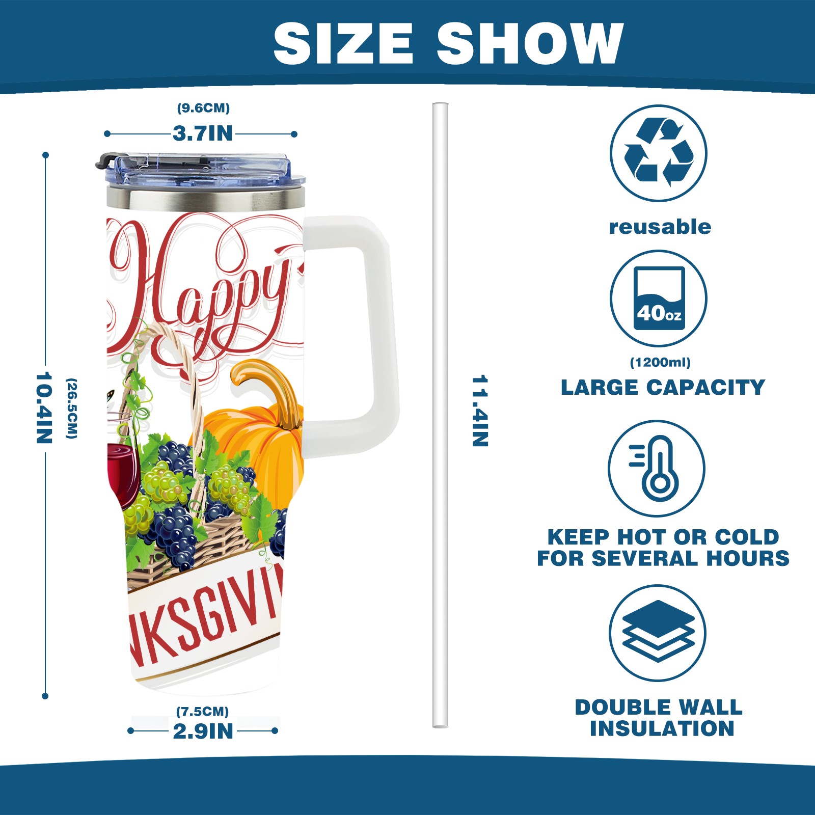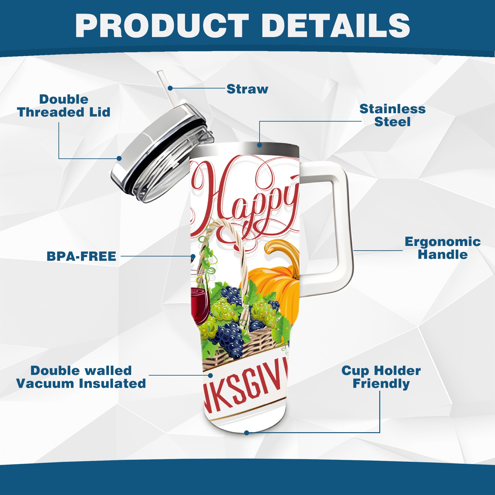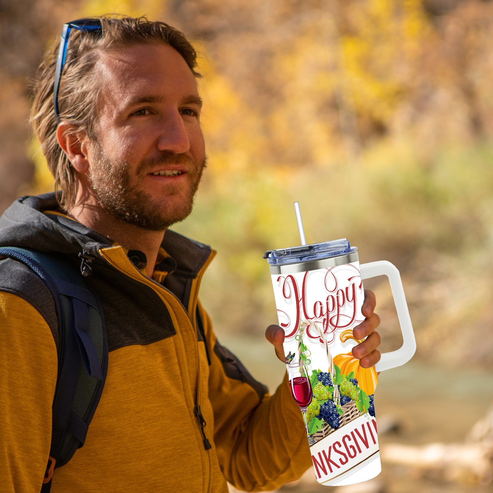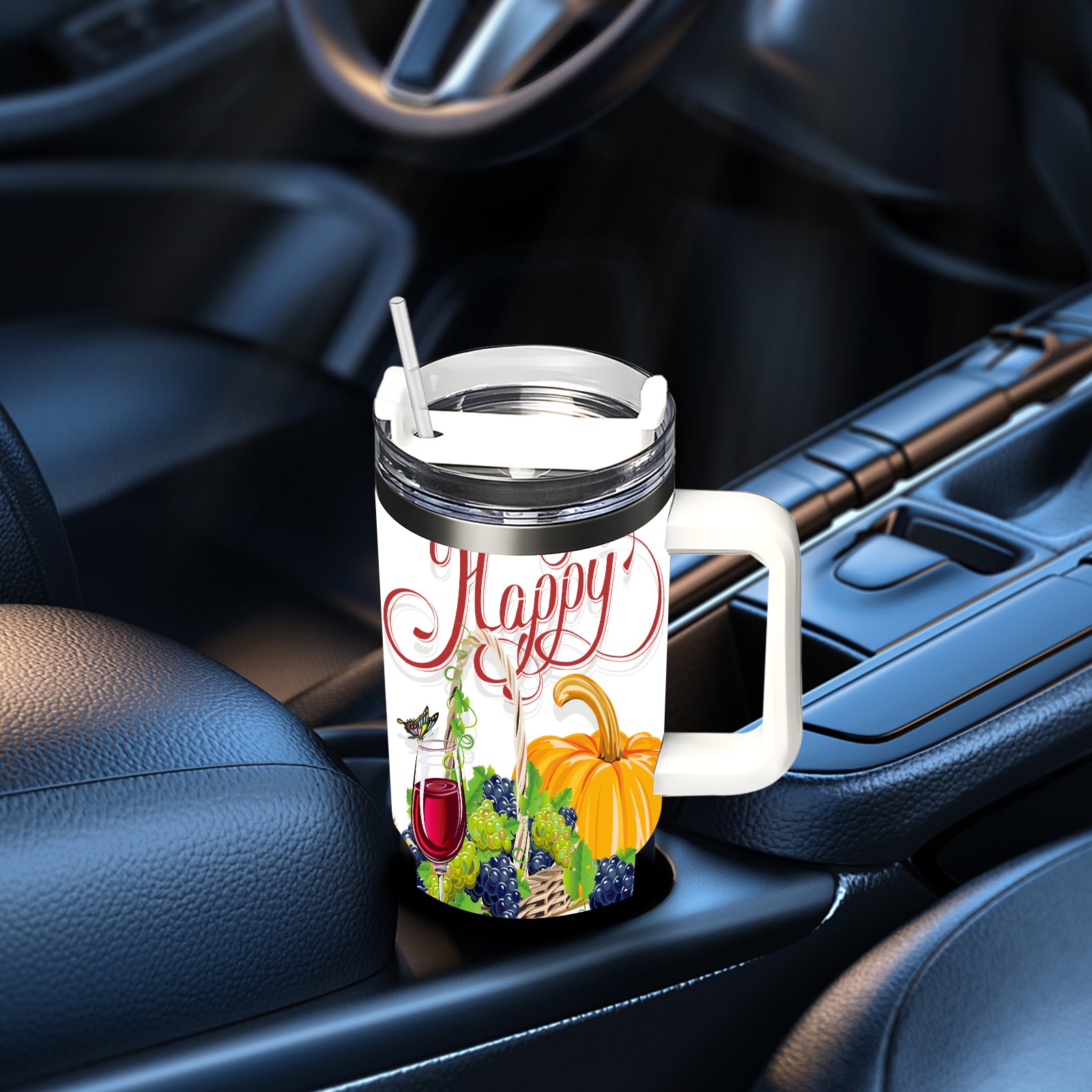 40 унций полностью напечатанный автомобильный стакан happy Thanksgiving Day