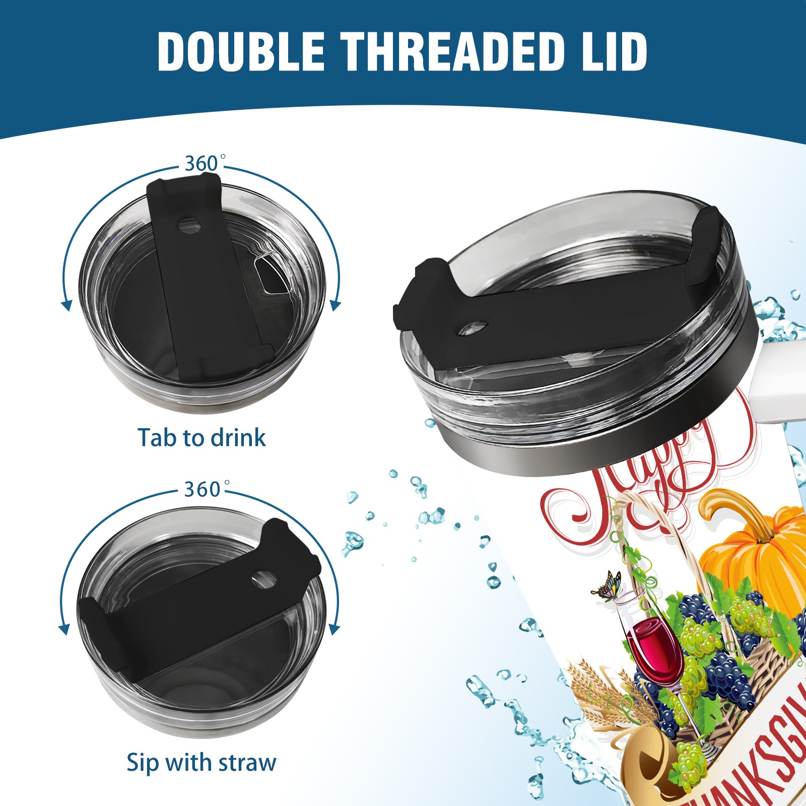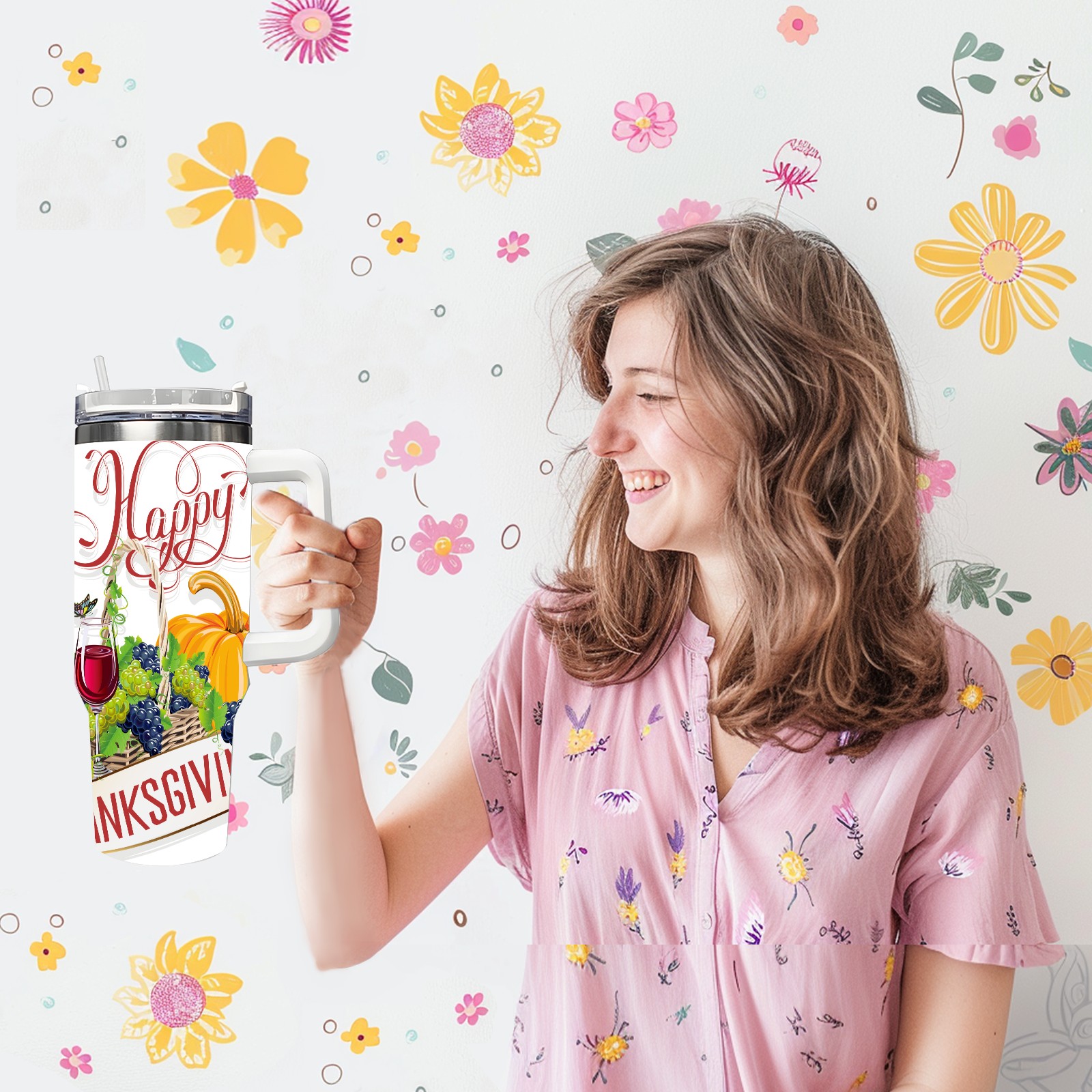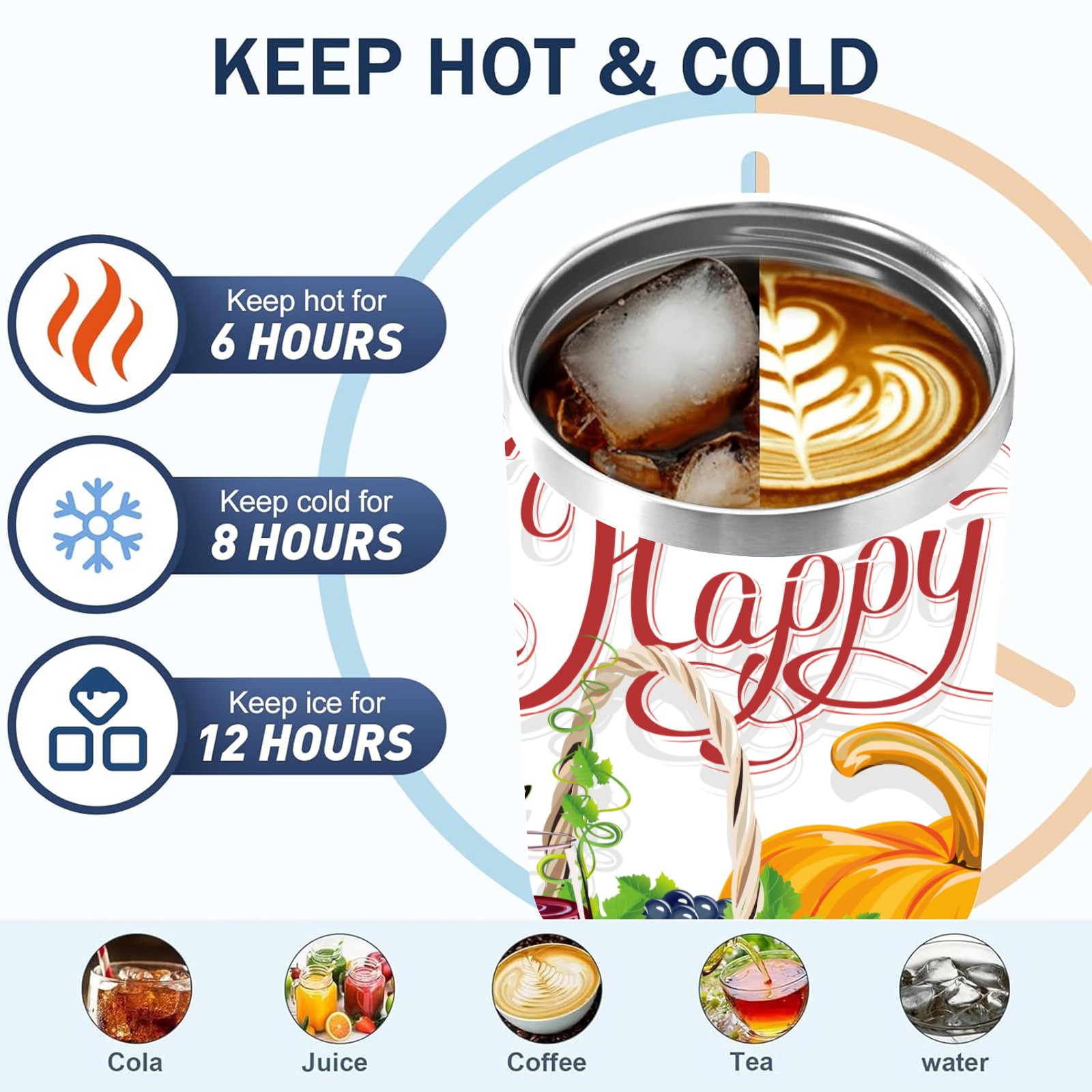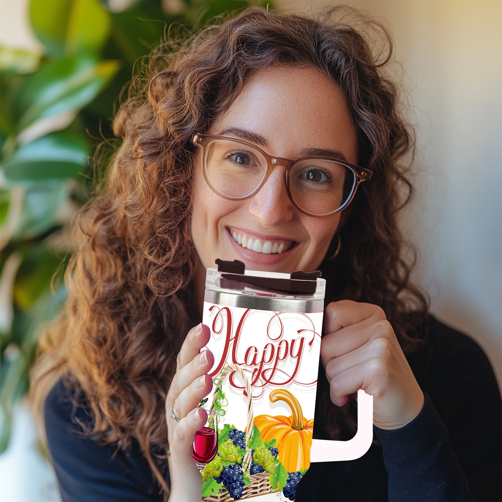 40 унций полностью напечатанный автомобильный стакан happy Thanksgiving Day