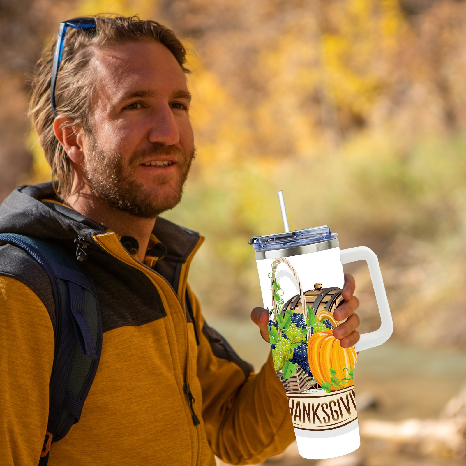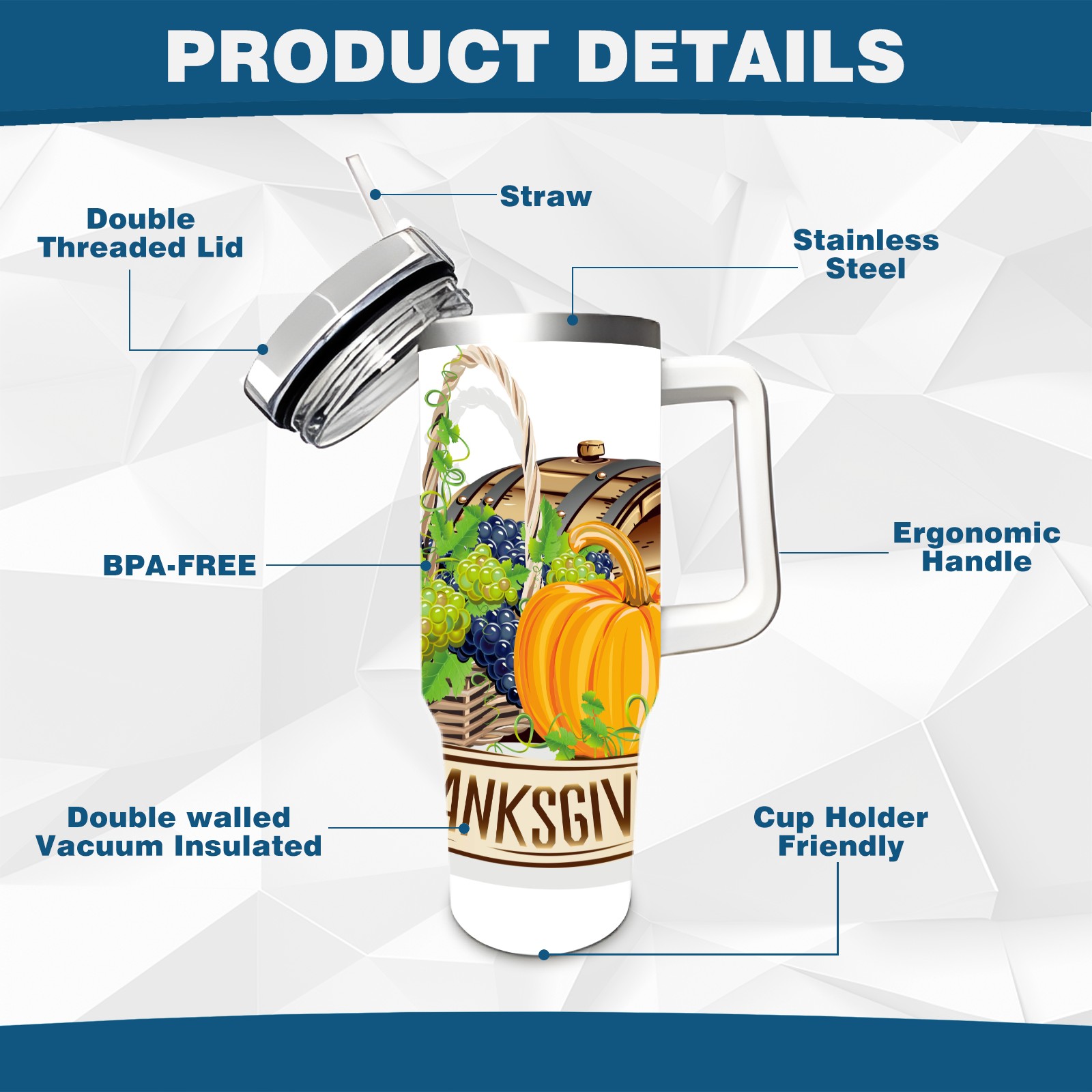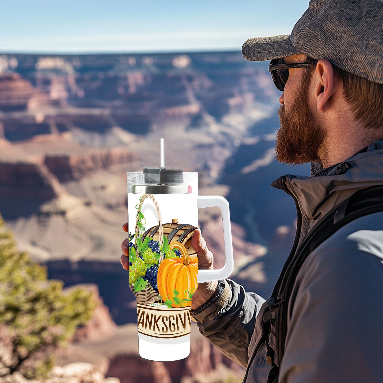 40 унций полностью напечатанный автомобильный стакан happy Thanksgiving Day grapes